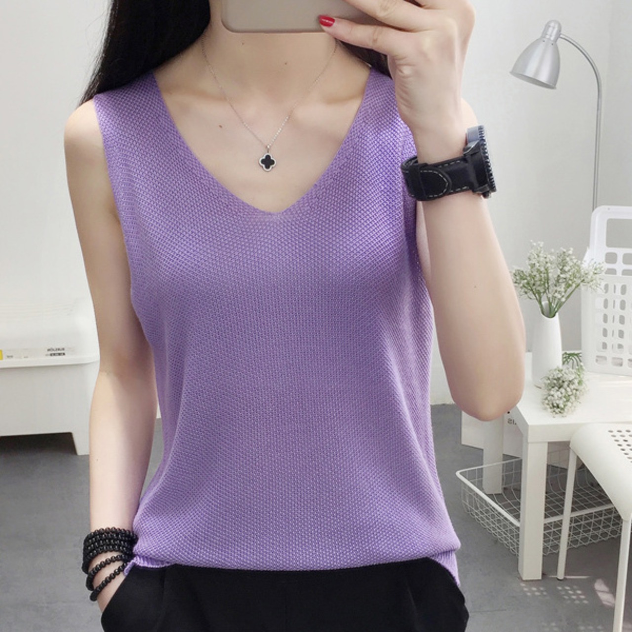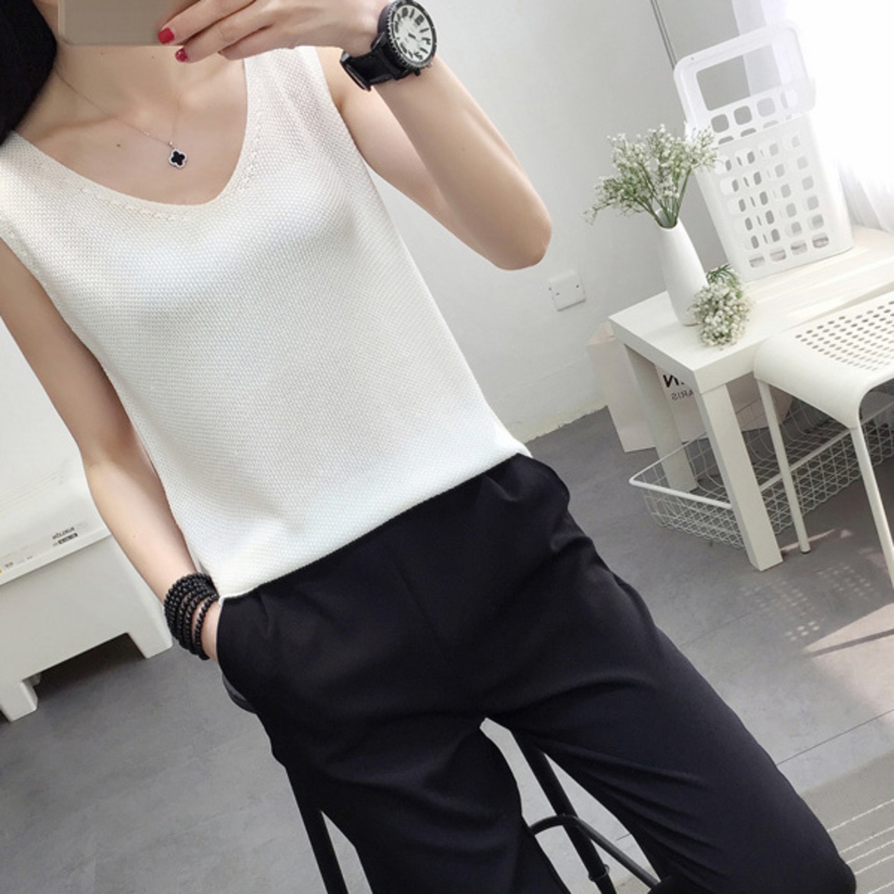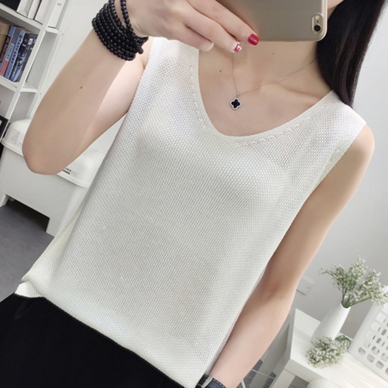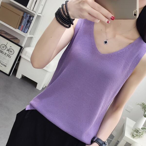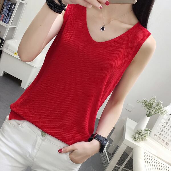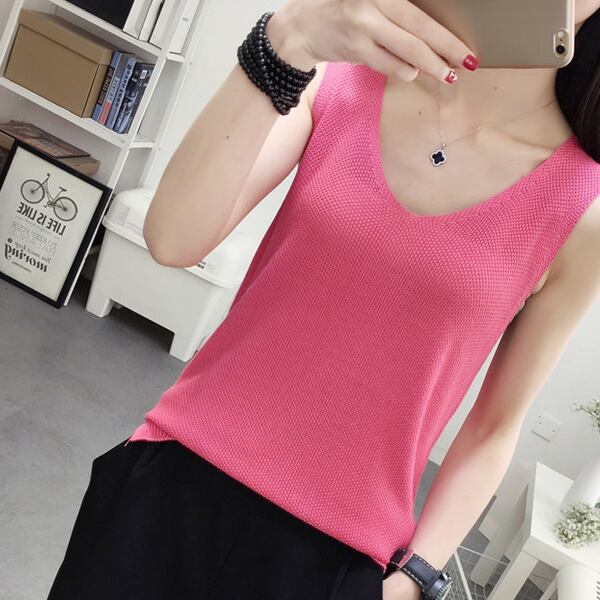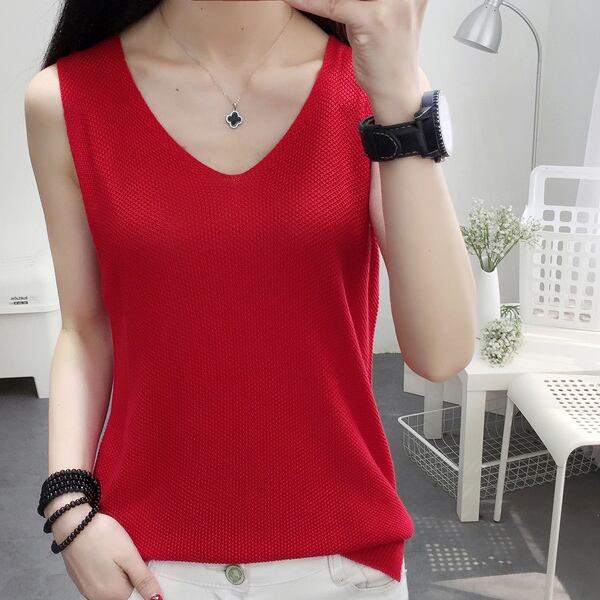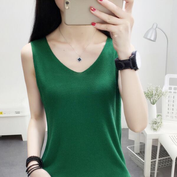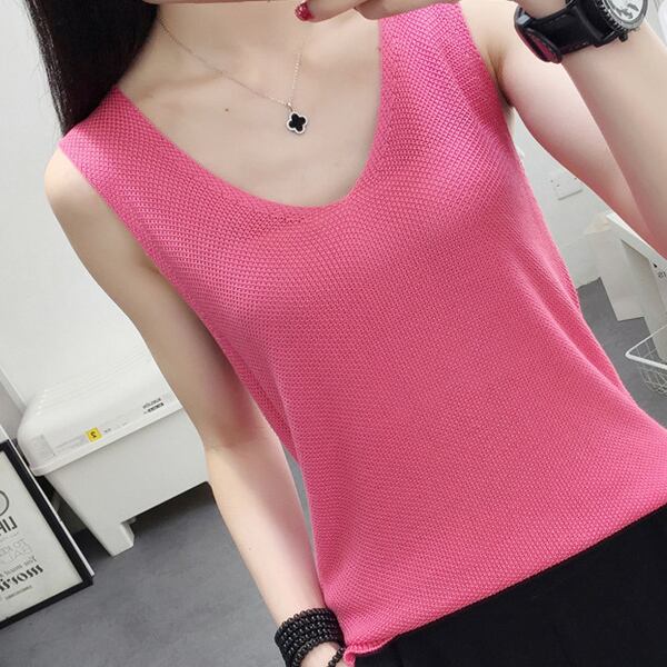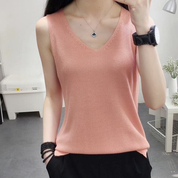全9色 ニット ベスト ノースリーブ スリーブレス 春夏トレンド シンプル Vネック 大人可愛い デート