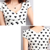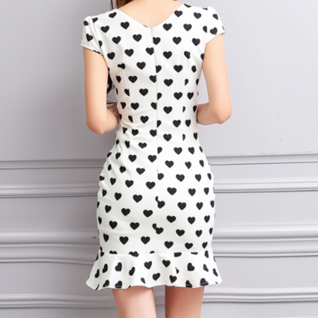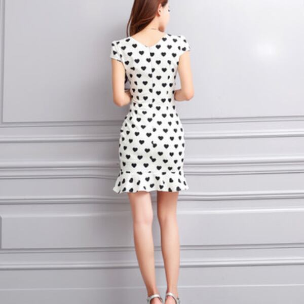 ハートワンピース フィッシュテール 胸元開き Vネック 二の腕細 半袖 フレア デート かわいい