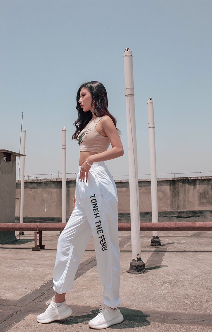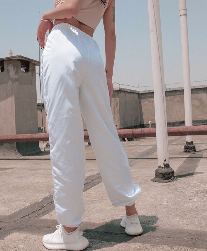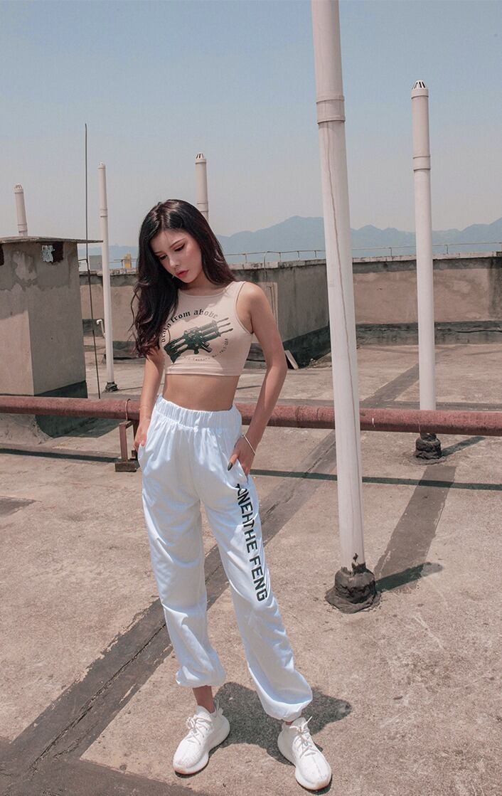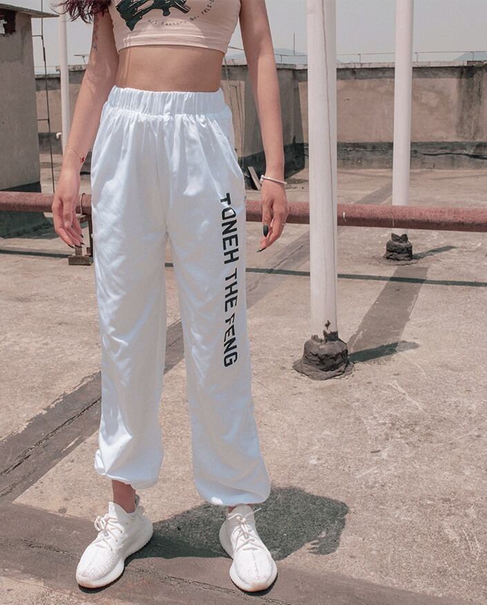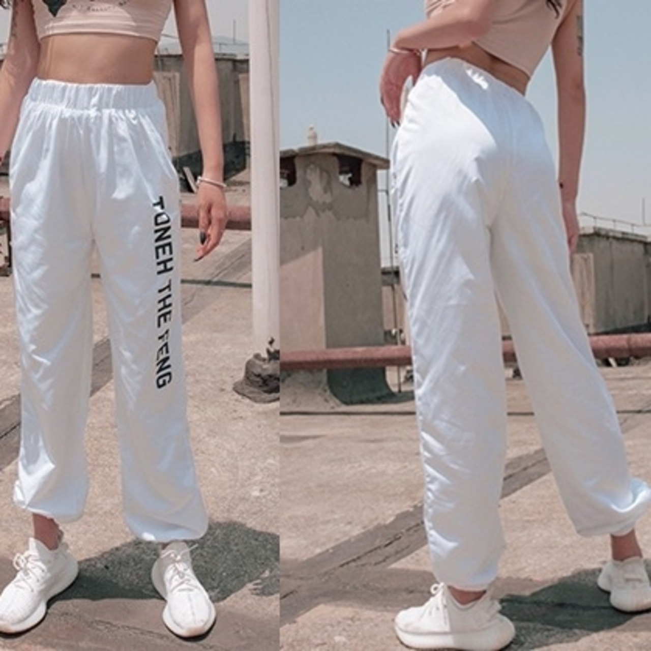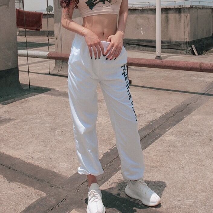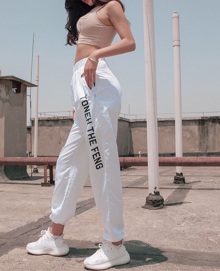 パンツ スポーツ ダンス ロゴ レディース ハイウエスト カジュアル 薄い シルク ハーレム ハーラン HIPHOP 原宿系 ホワイト