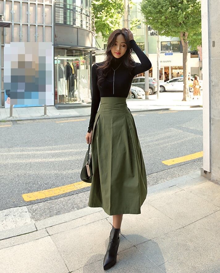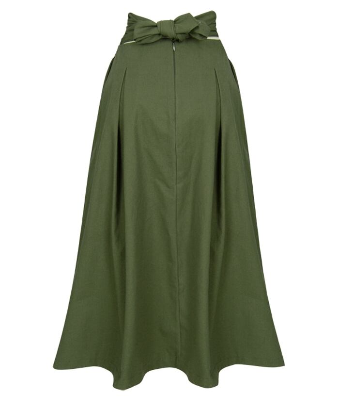バックリボンがポイントのミモレ丈スカート。