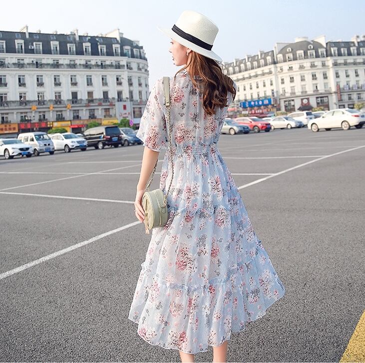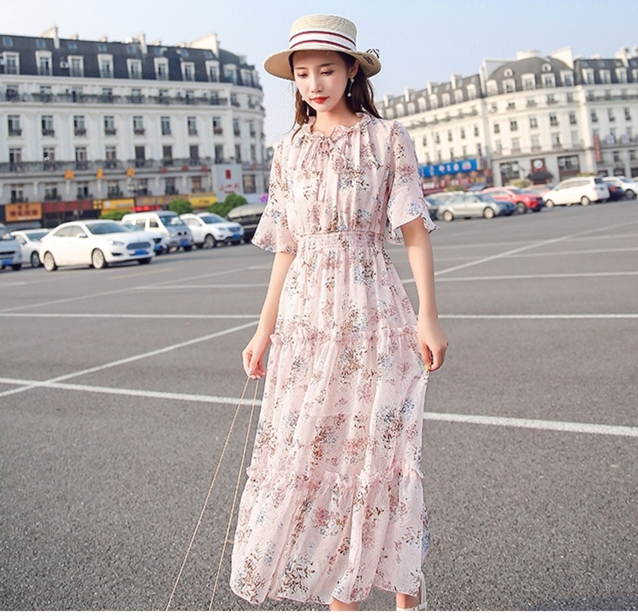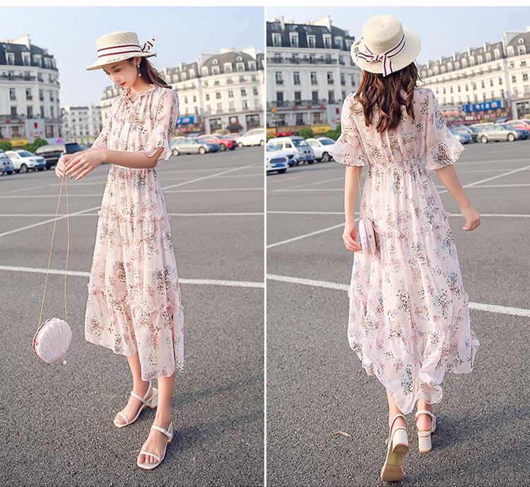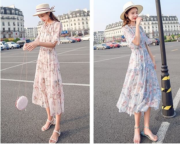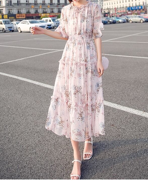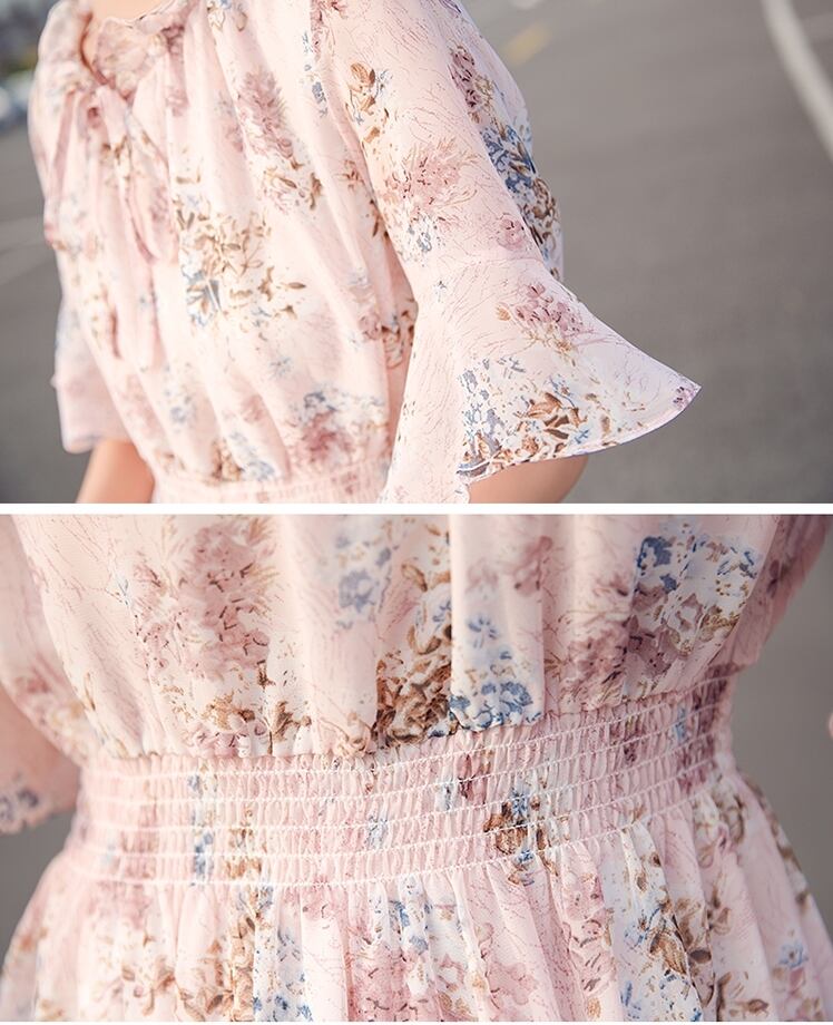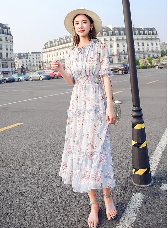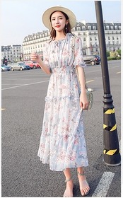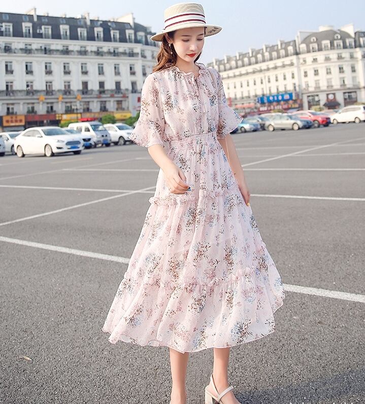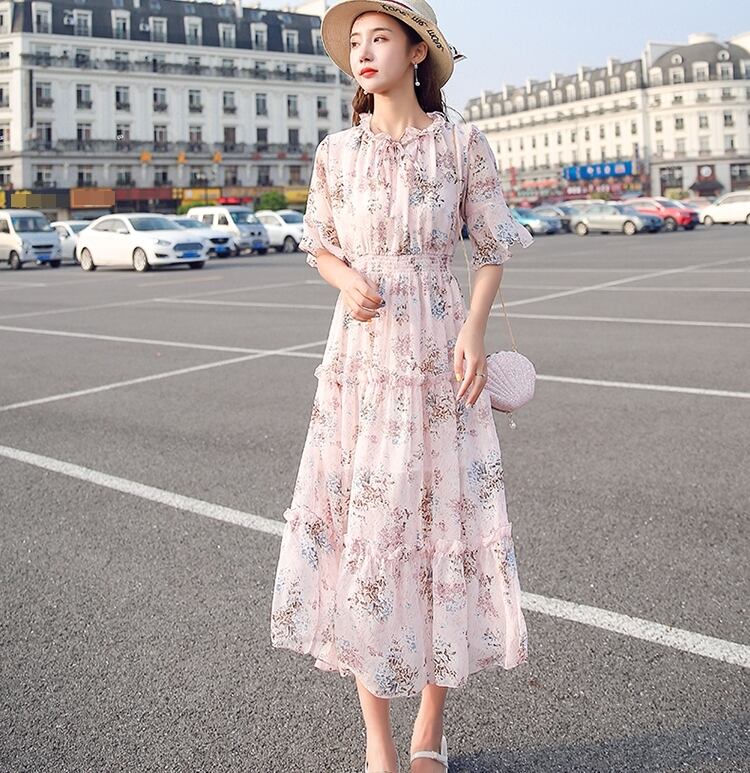 お花柄がキュートなティアードデザインミモレ丈ワンピース。