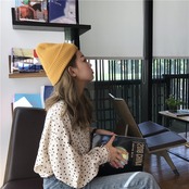 かわいいドット柄ですが、こちらは首元と袖口がさらにかわいいデザインになっています。