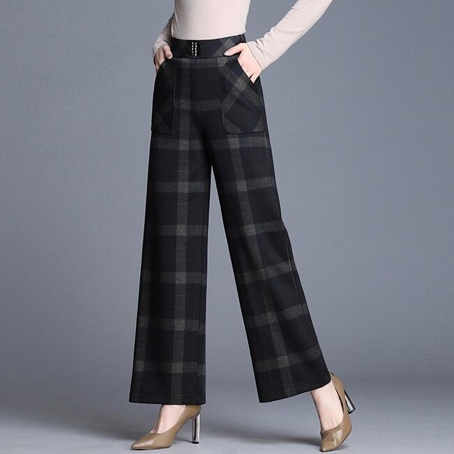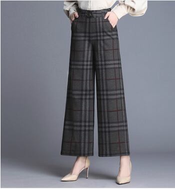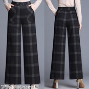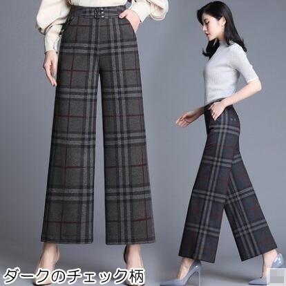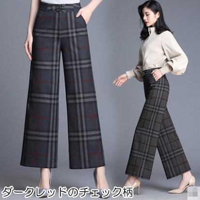 全4色 ワイドパンツ ハイウエスト チェック柄 カジュアル 秋冬 レトロ 大人可愛い デート お出かけ デイリー 20代