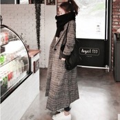 チェスターコート グレンチェック柄 ロング丈 襟有り カジュアル 大人 シンプル 防寒 通勤 秋冬 お出かけ ゆったり オーバーサイズ