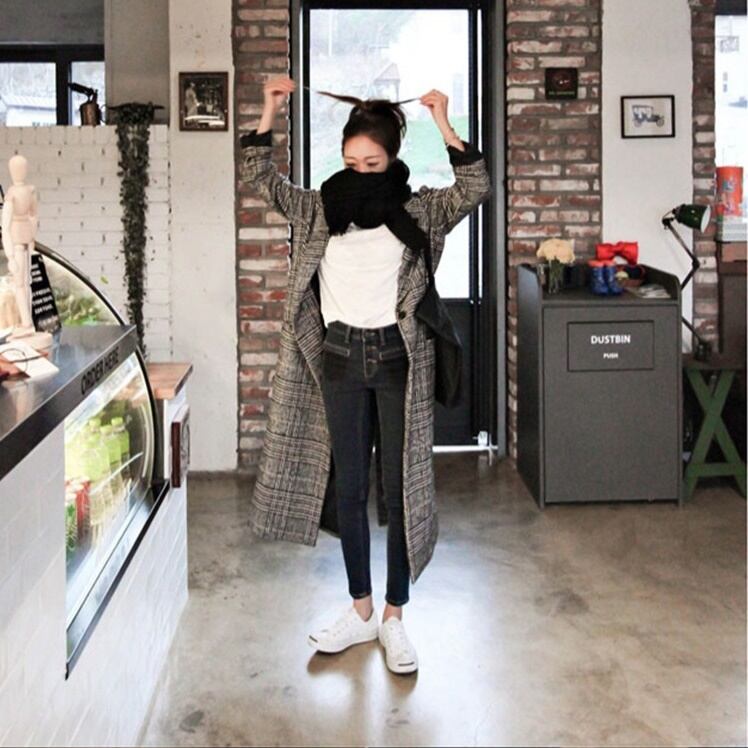 黒・白のチェック柄が合わせやすく、防寒にも。
