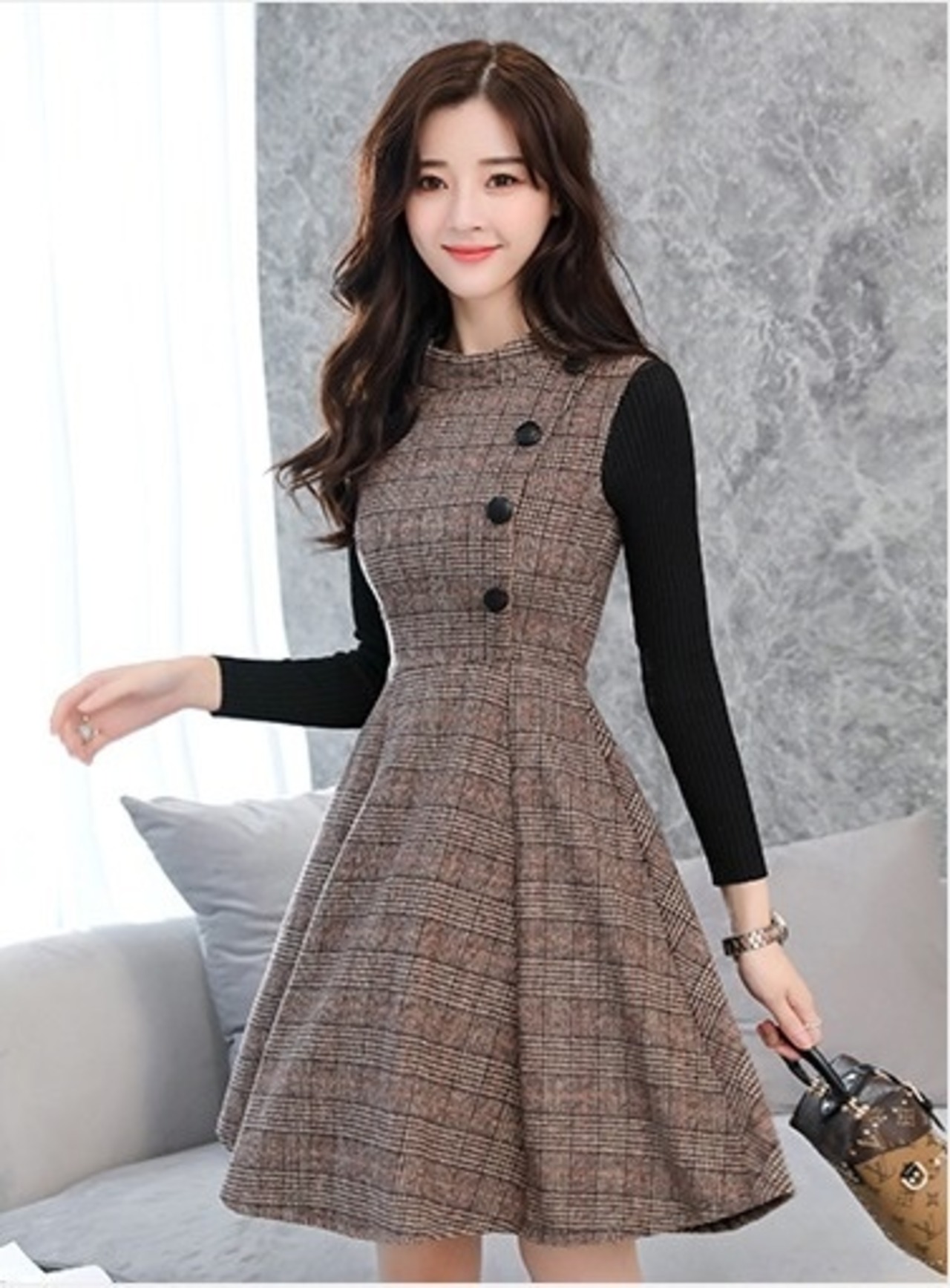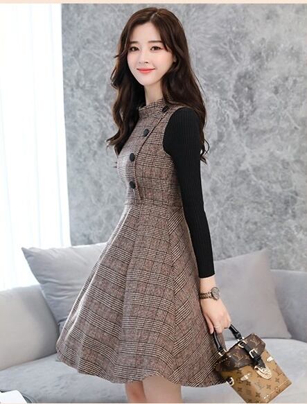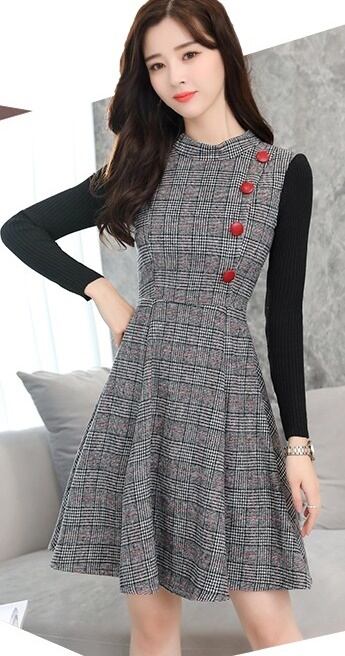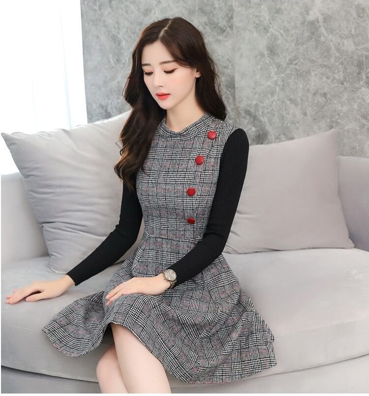 全2色 長袖 ワンピース ツーピース風 ミニ丈 ショート丈 ふんわり 裾広がり ボタン フレア 女子力アップ モテコーデ デート お出かけ 秋冬