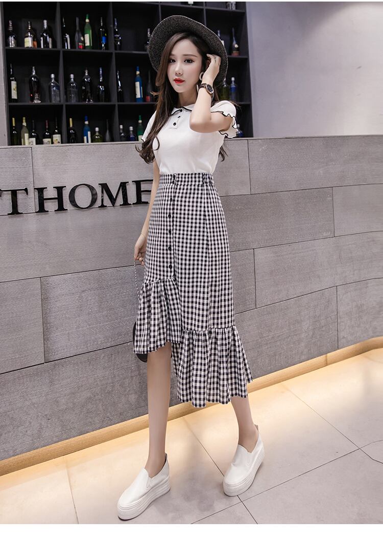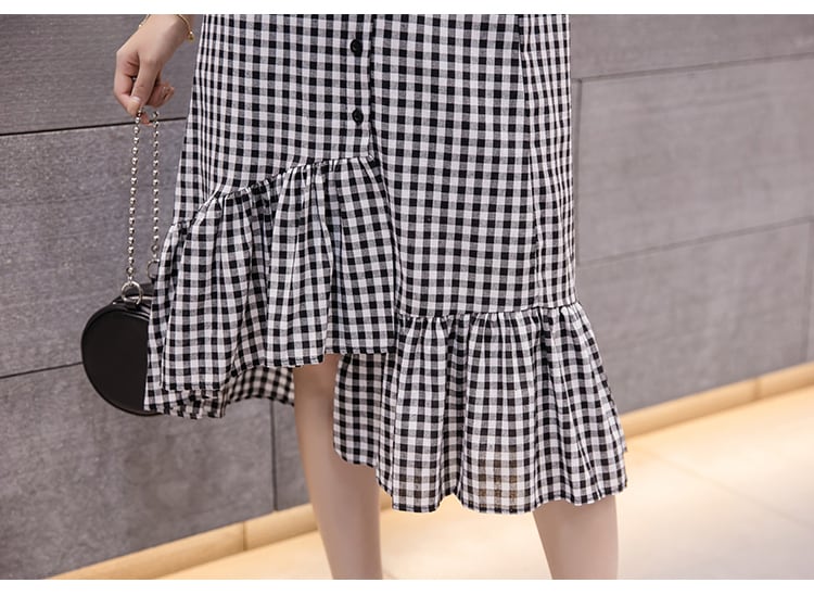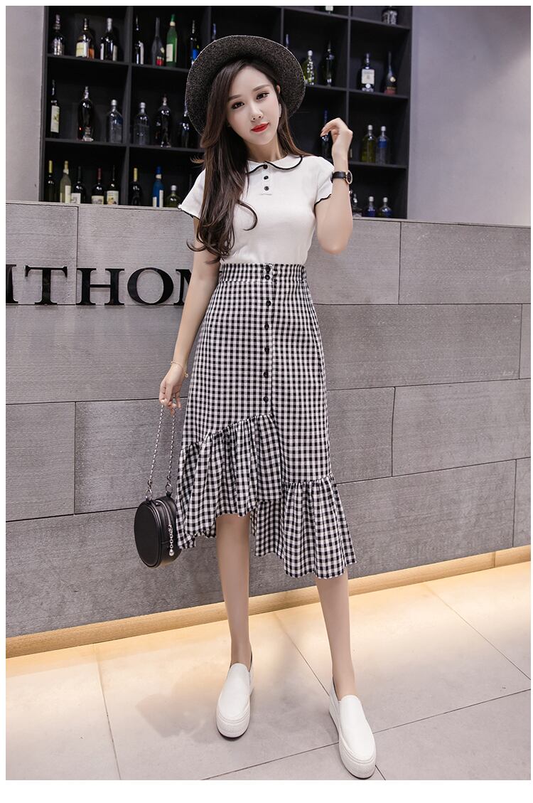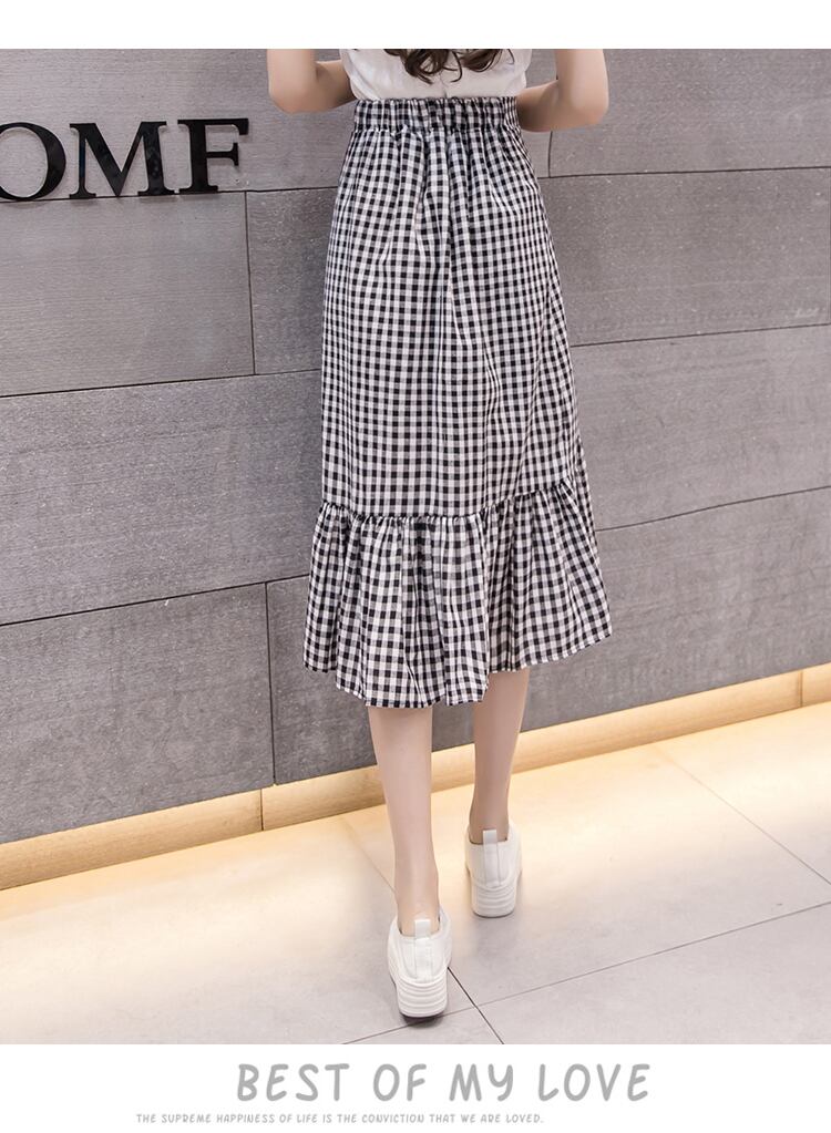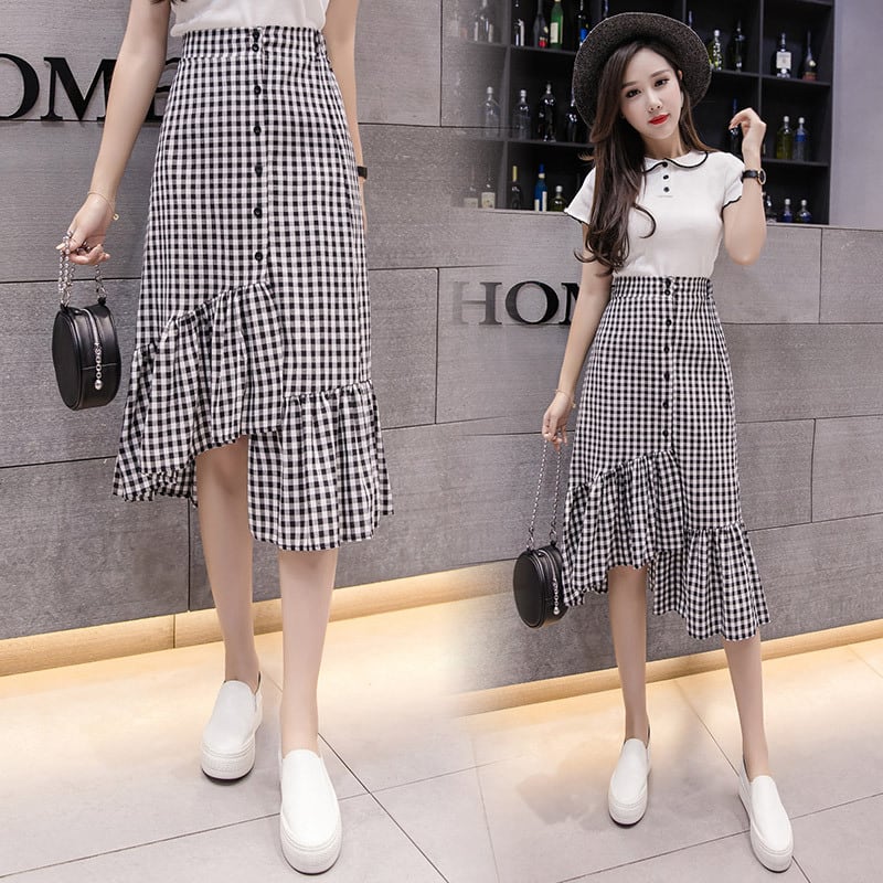 スカート フレア ミモレ丈 レトロ 切り替え ひざ下 ひざ丈 フィッシュテール フロントボタン アシンメトリー チェック柄 デイリー デート