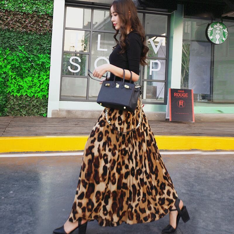 プリーツスカート レオパード柄 ロング丈 秋冬 レトロ 大人可愛い デート お出かけ デイリー 20代