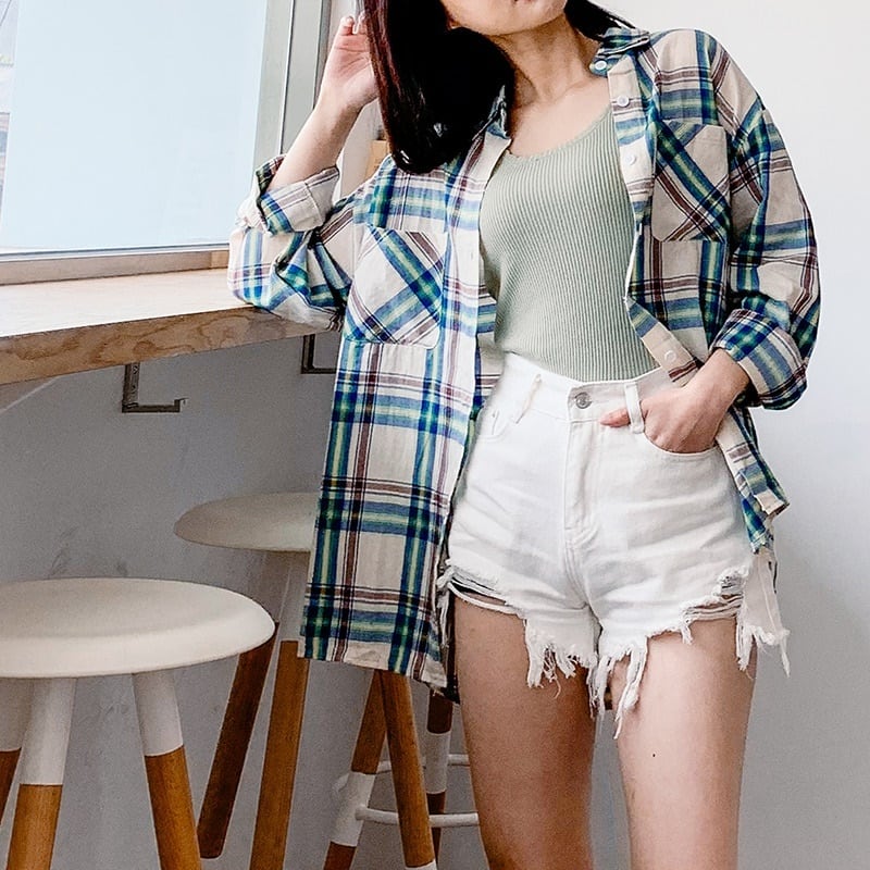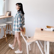 全2色 チェック柄 長袖 シャツ ブラウス トップス アウター フロントボタン レトロ 可愛い ボーイッシュ カジュアル 大柄チェック スポーティ