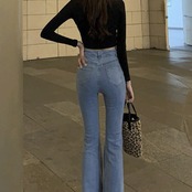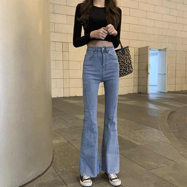 デニムパンツ ハイウエスト ストレート ワイドレッグ レトロ 大人可愛い デート お出かけ デイリー 20代