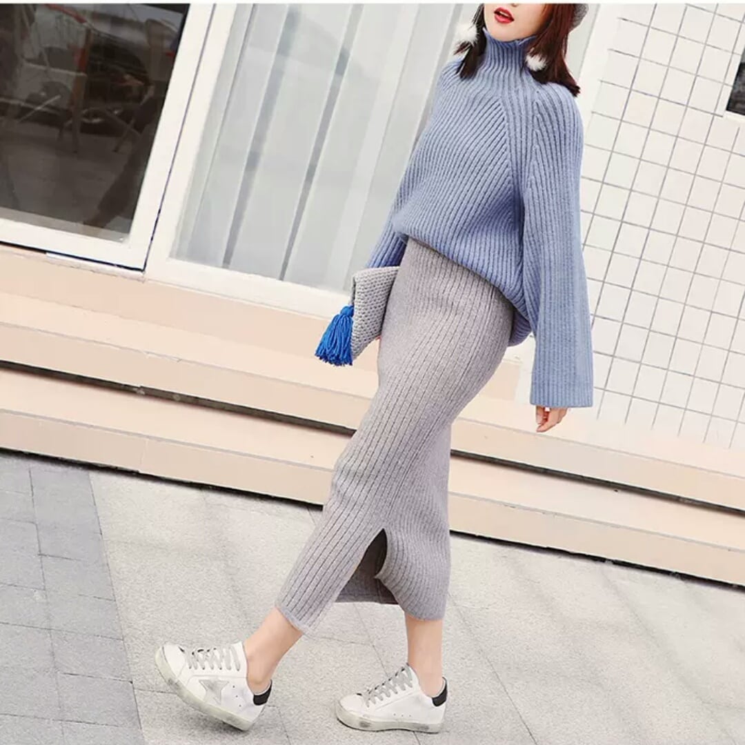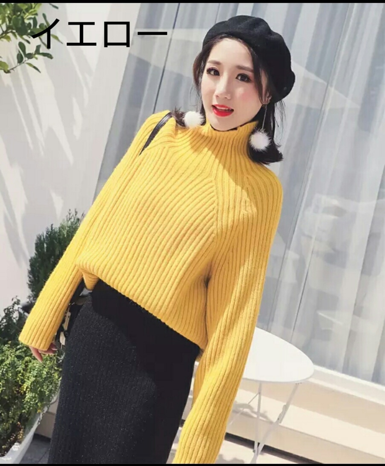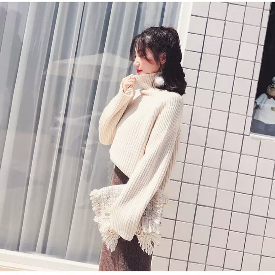 豊富なカラーのハイネックニット。