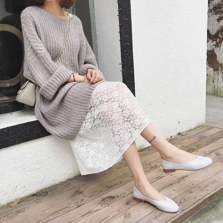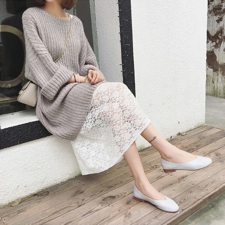 ニットセットアップ レースワンピース 秋冬 レディース 2点セット クルーネック ケーブル編み 暖かい 重ね着 大人可愛い カジュアル