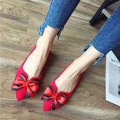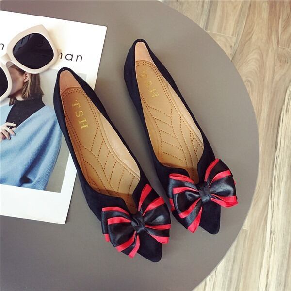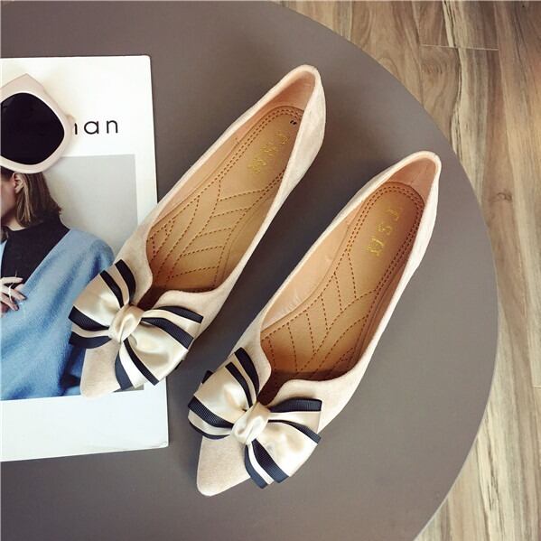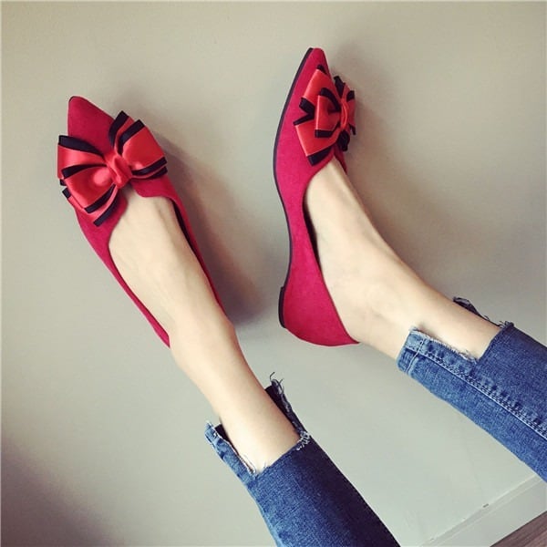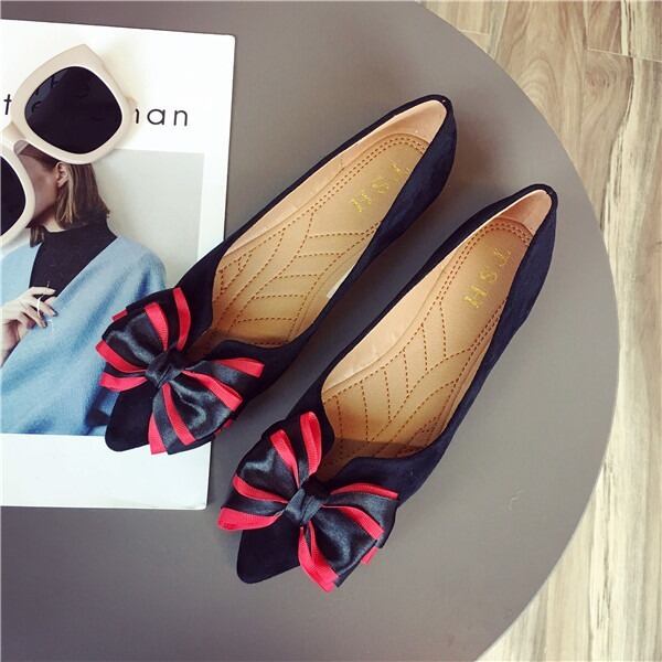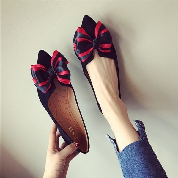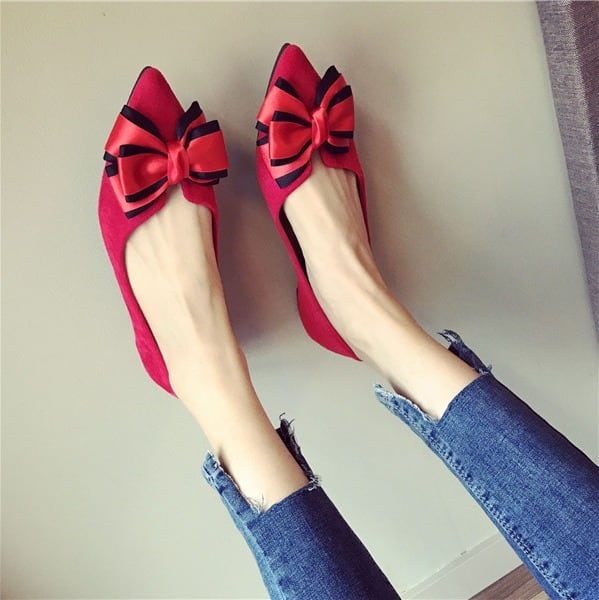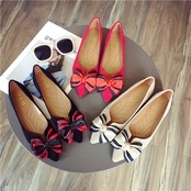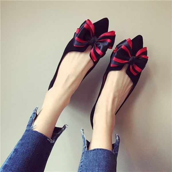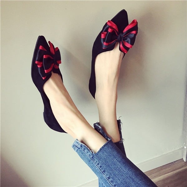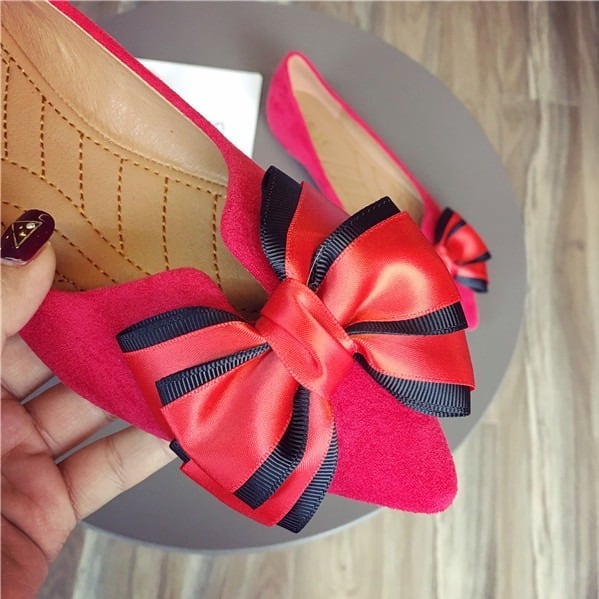 BIGリボンがレディライクなフラットパンプス。