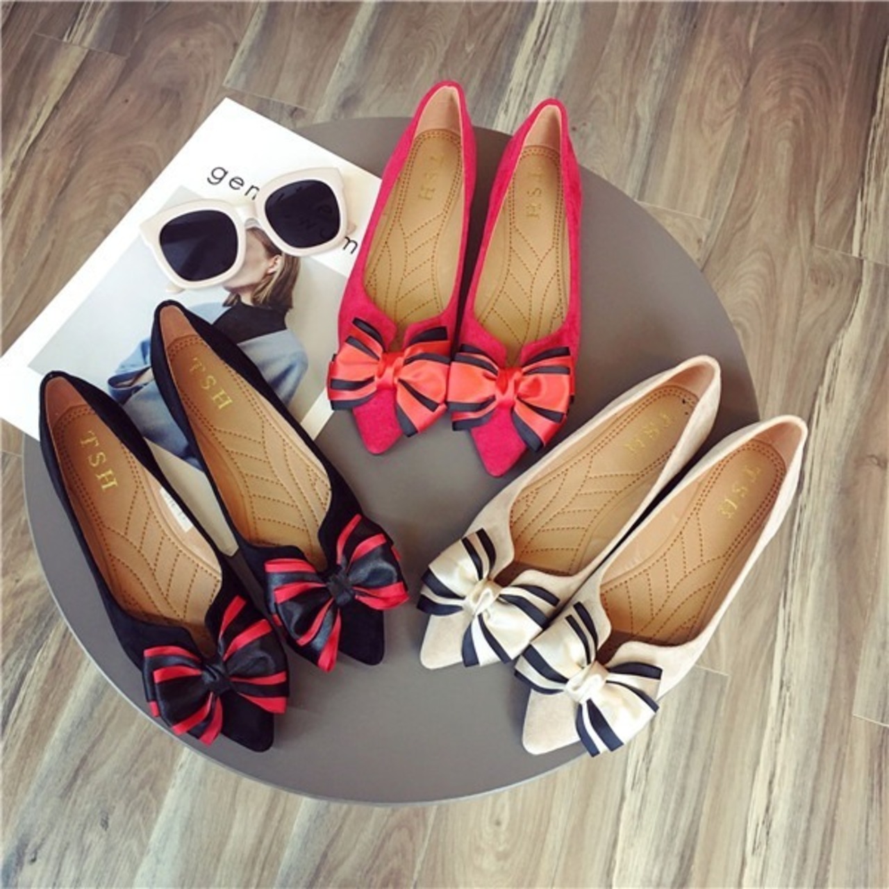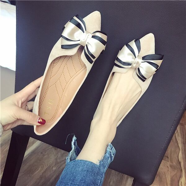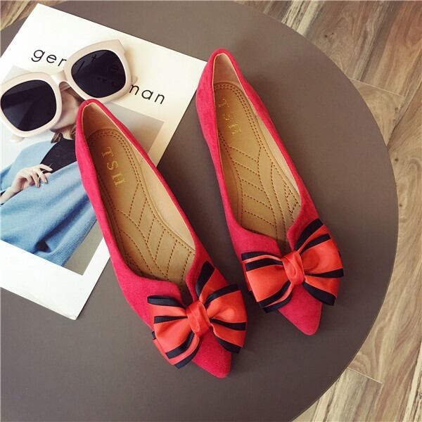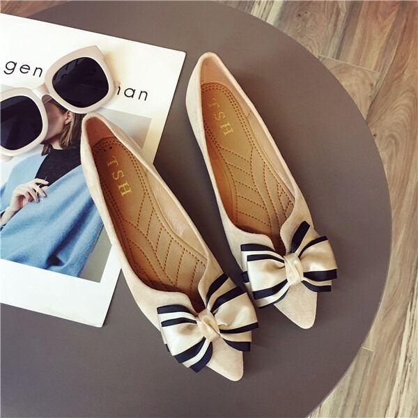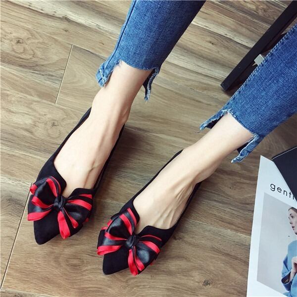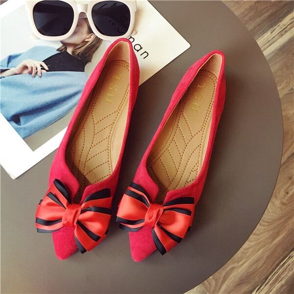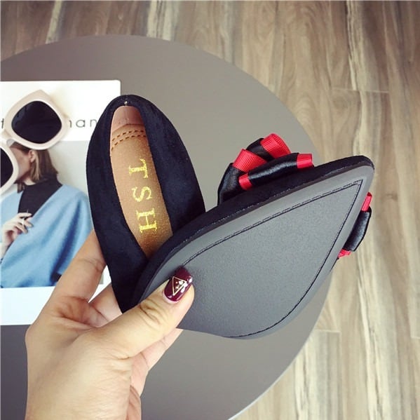 BIGリボンがレディライクなフラットパンプス。