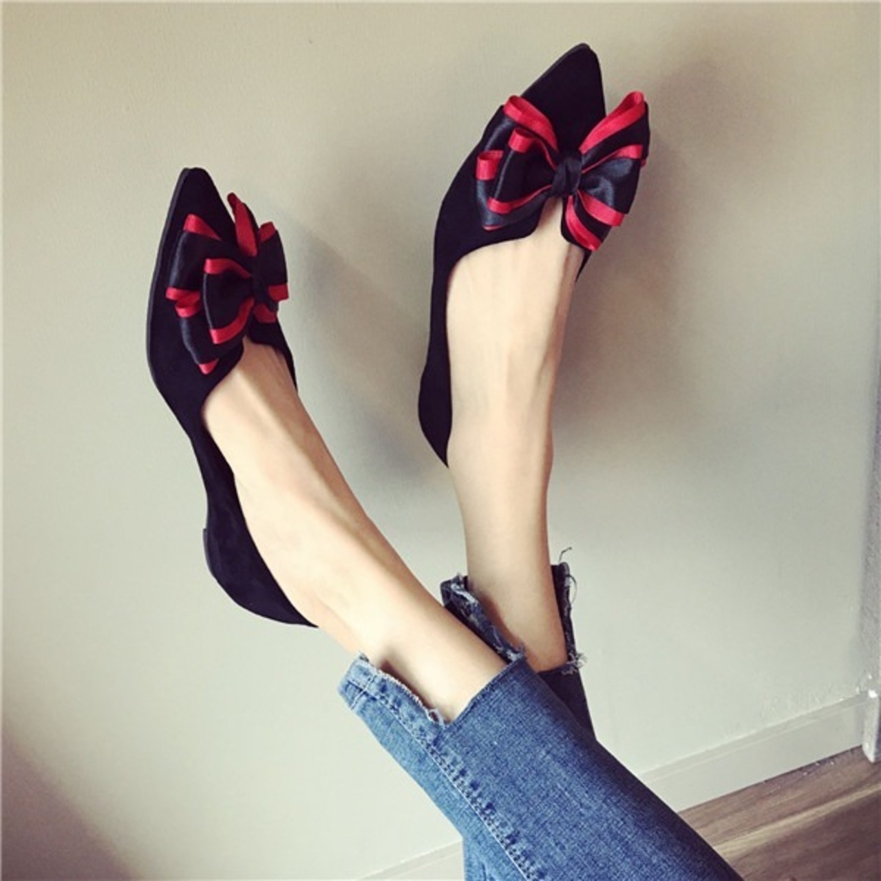 全3色 大きいサイズ パンプス リボン フラット スリッポン ローファー ぺたんこ バレエ シューズ BIGリボン ポインテッドトゥ