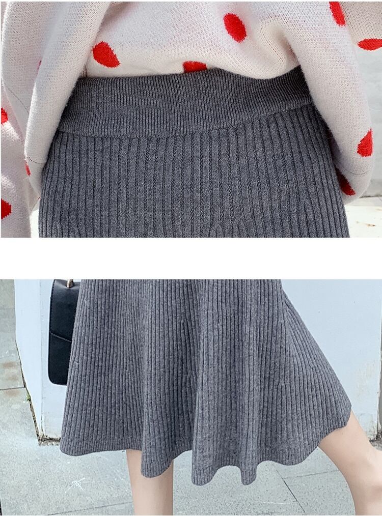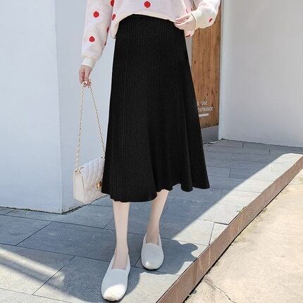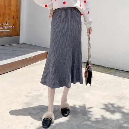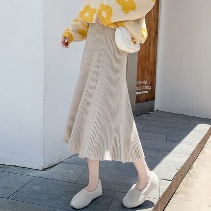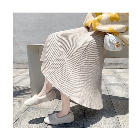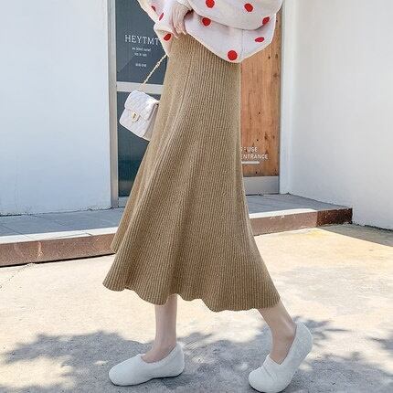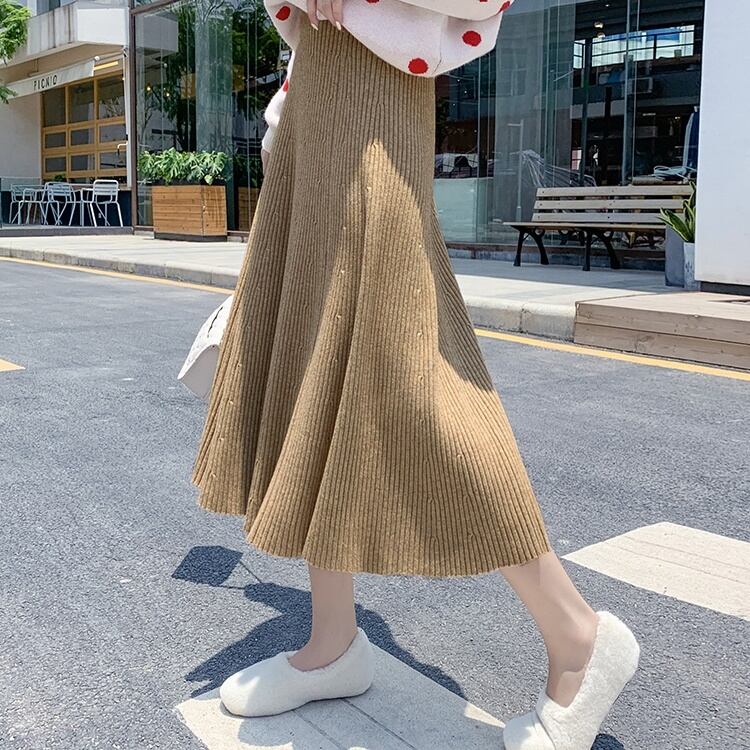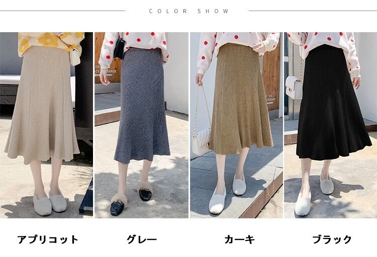 全4色 ハイウエストスカート ニット ロング丈 無地 秋冬 ベイクドカラー ベーシック カジュアル 大人可愛い