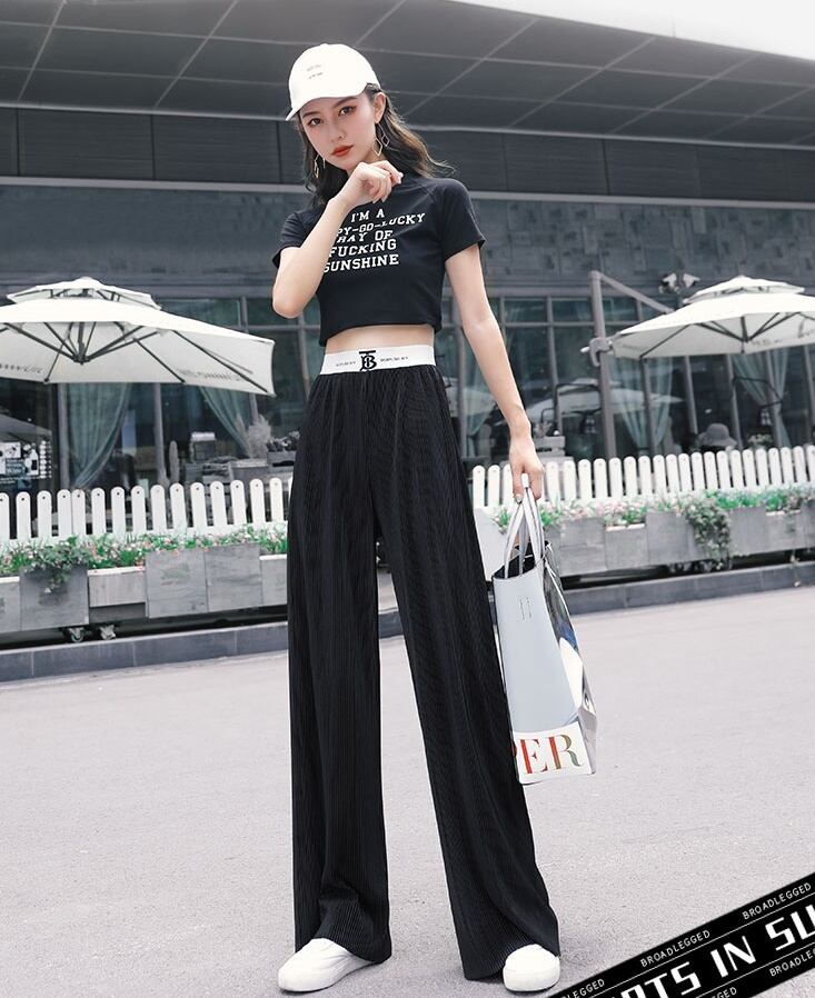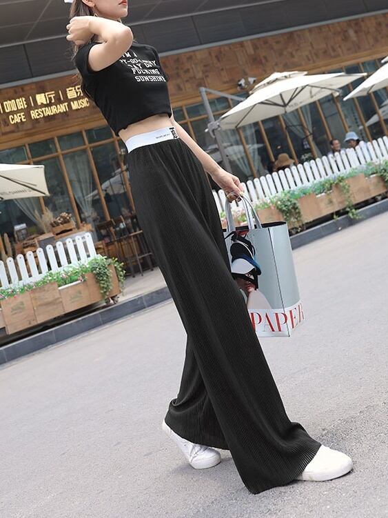 全2色 ワイドパンツ ロング丈 ゆったり スポーティ カジュアル 春秋 ジャージ ベーシック