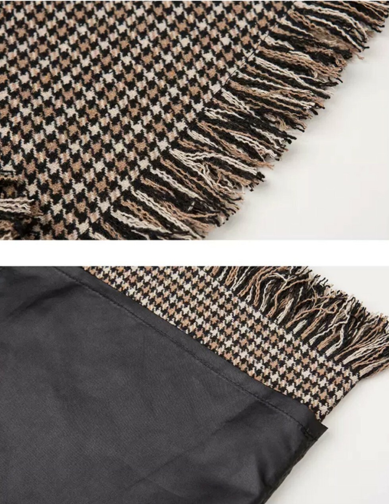 フロント、裾がフリンジになっているので上品な着こなしに。