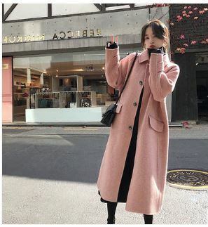 全2色 ウールコート アウター ロング丈 ポケット 襟有り フロントボタン カシミヤ シンプル 大人可愛い 無地 長袖 レトロ デイリー 上品 羽織りもの エレガント 秋冬
