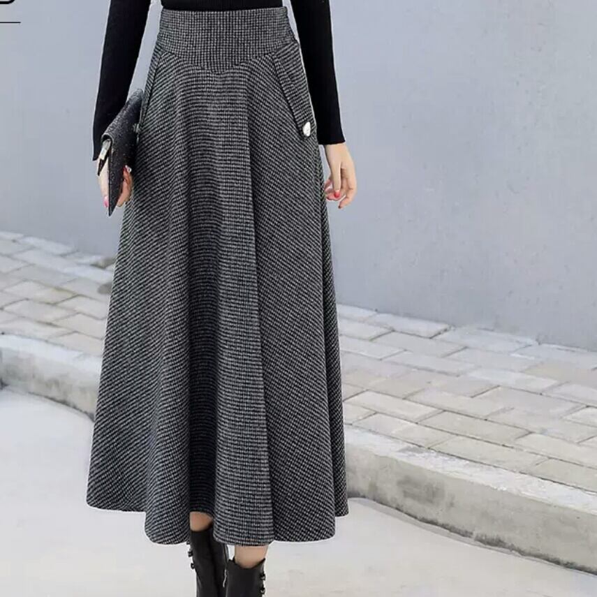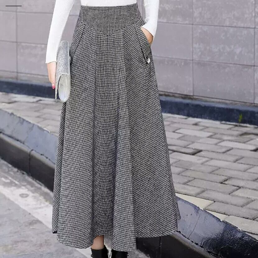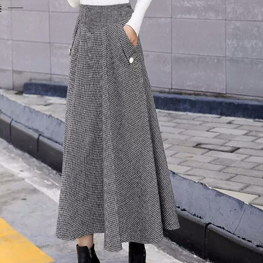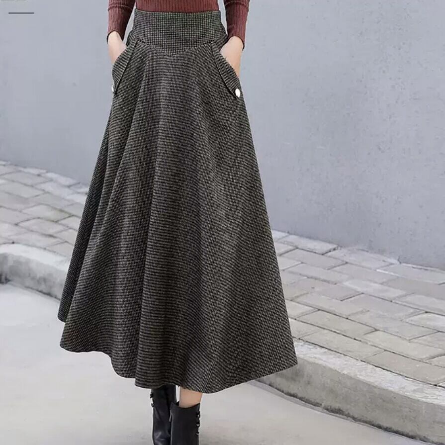全3色 フレアスカート ロング丈 ミモレ丈 ハイウエスト チェック柄 大人 カジュアル シンプル キレイめ お出かけ デート 女子会 お買い物 通勤 通学 オフィス 秋冬