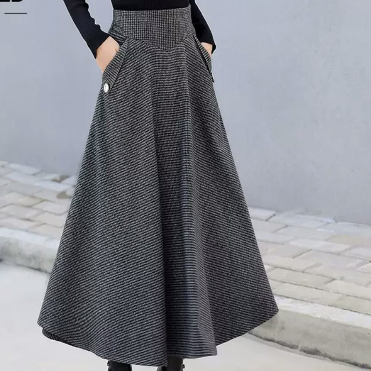 ハイウエストのミモレ丈で、大人な印象に。