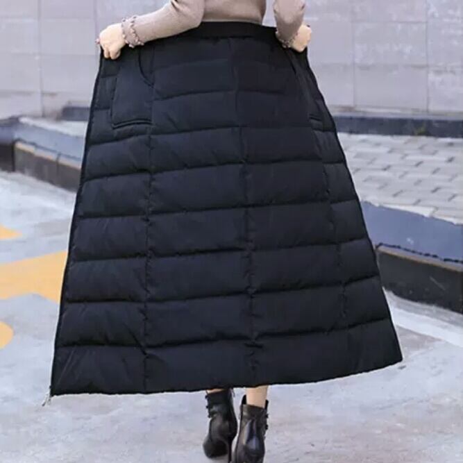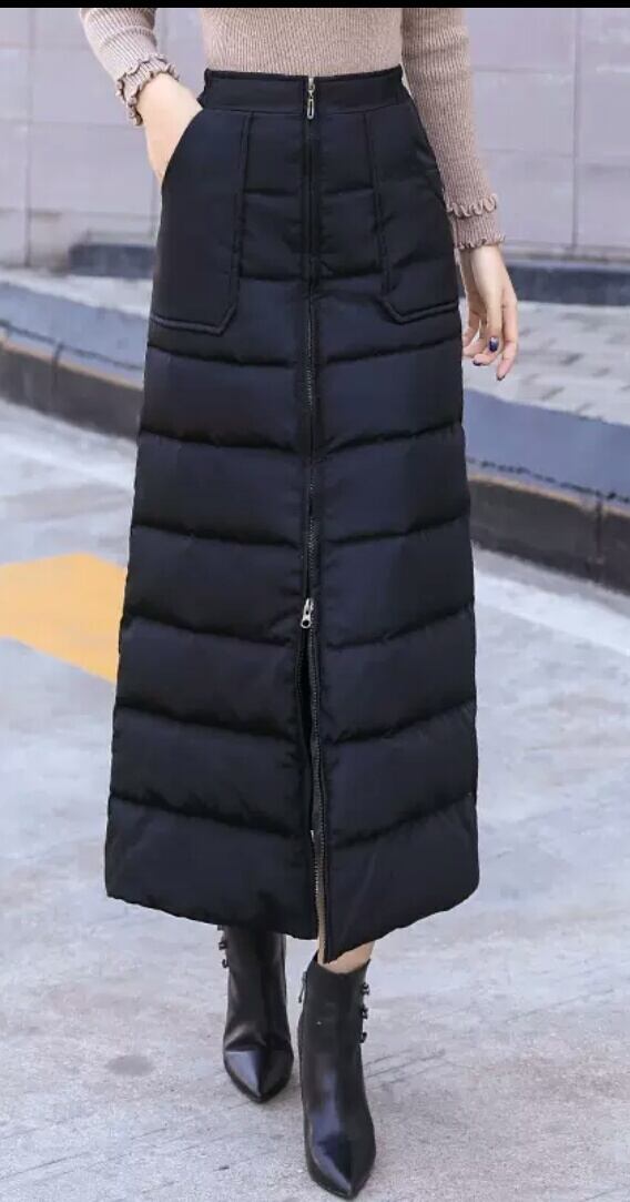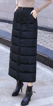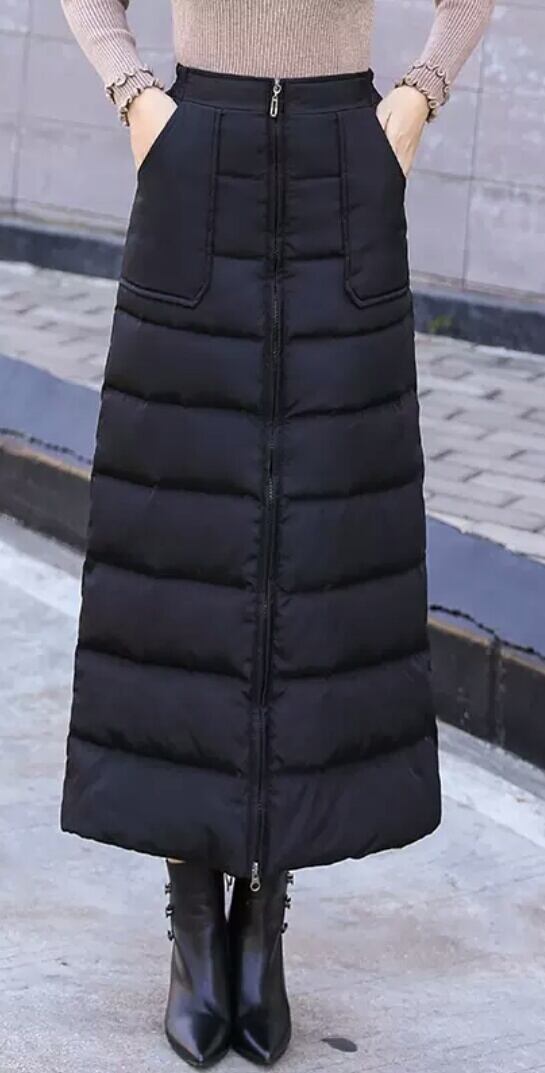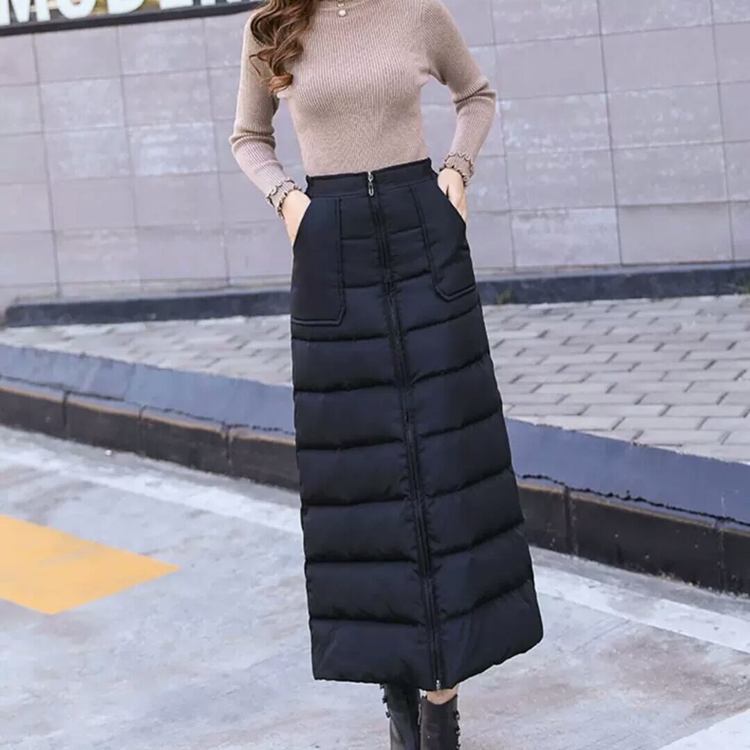 中綿 ロングスカート 防寒 ロング丈 ジップアップ 黒 無地 ブラック お出かけ お買い物 デート 女子会 通学 通勤 レジャー 大人 カジュアル キレイめ シンプル