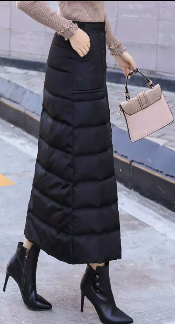 中綿で防寒バッチリのロングスカートです。