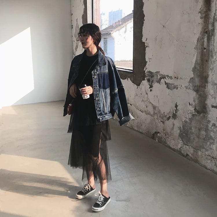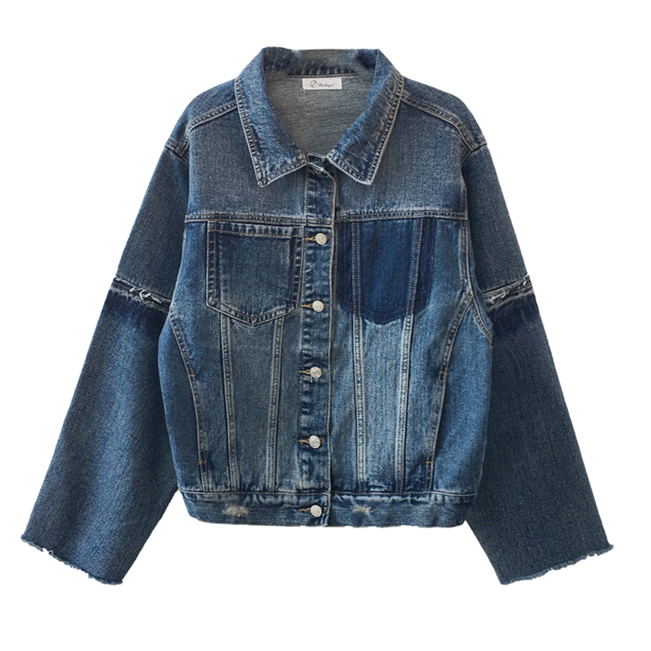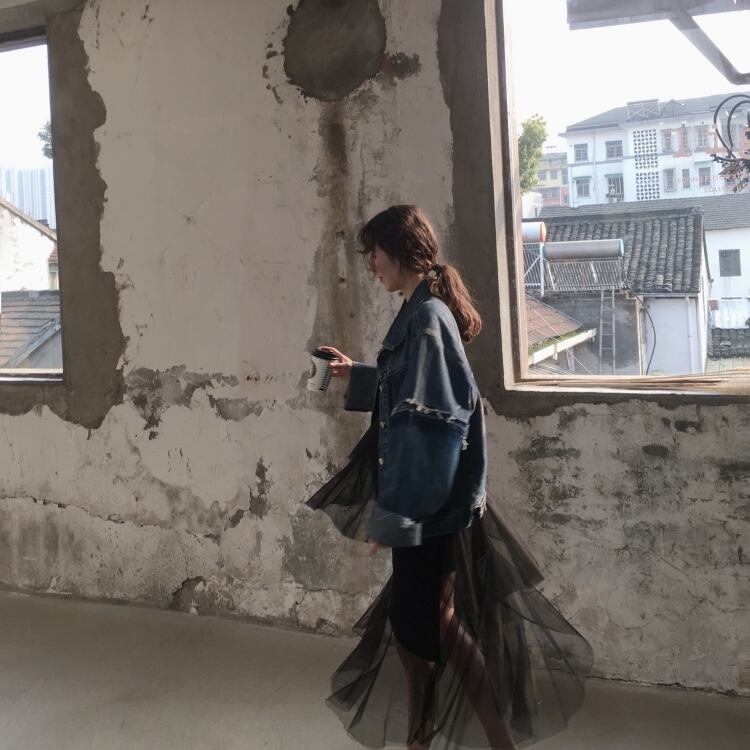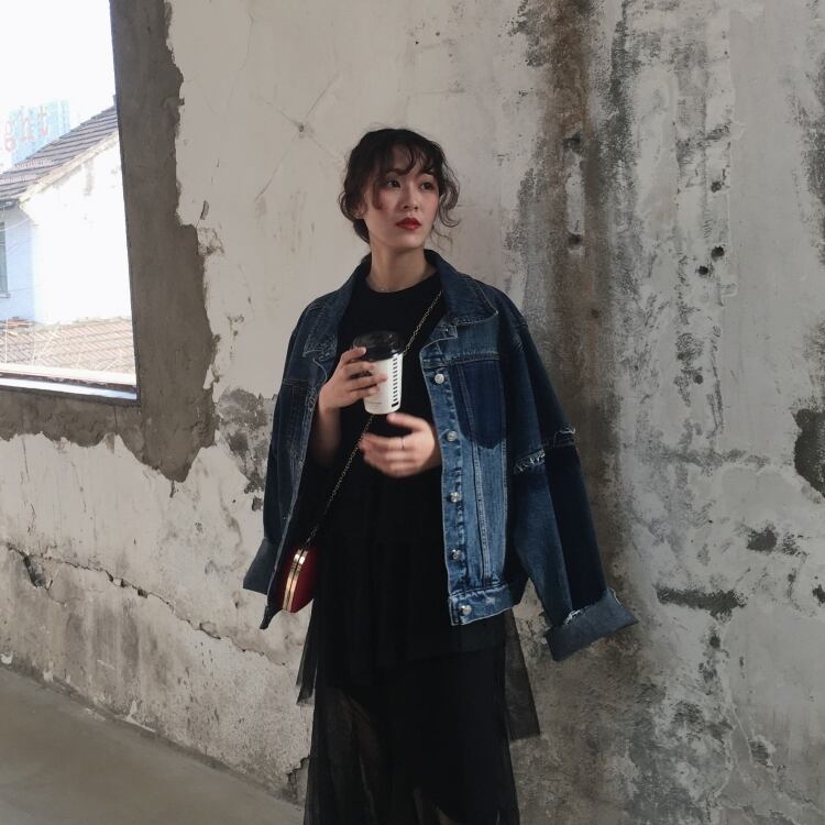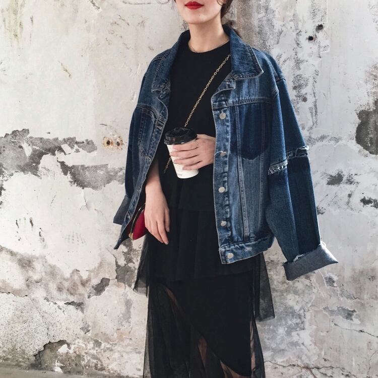 デニムジャケット アウター ミディアム丈 ウォッシュデニム 切りっぱなし袖 大人可愛い 無地 長袖 レトロ デイリー カジュアル 羽織りもの 秋冬