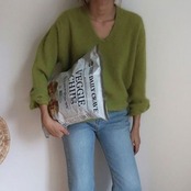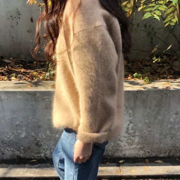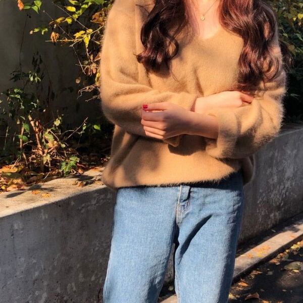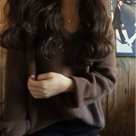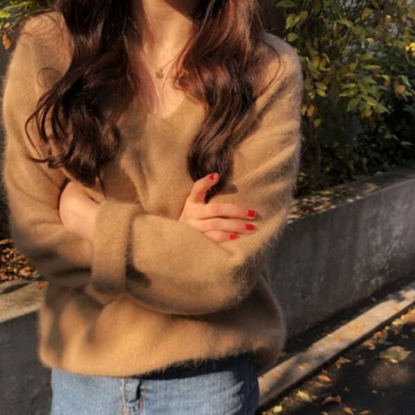 全4色 ニット セーター トップス レディース オーバーサイズ 無地 Vネック 長袖 レトロ デイリー ゆったり デート コットン 秋冬