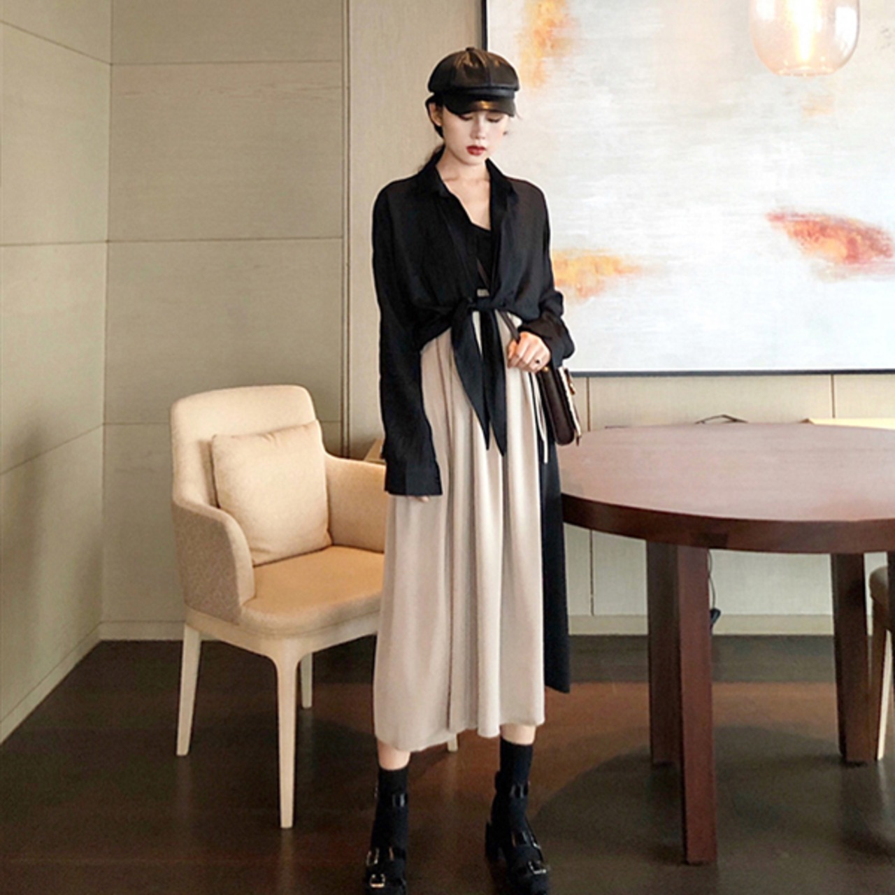 ベージュ+ブラック