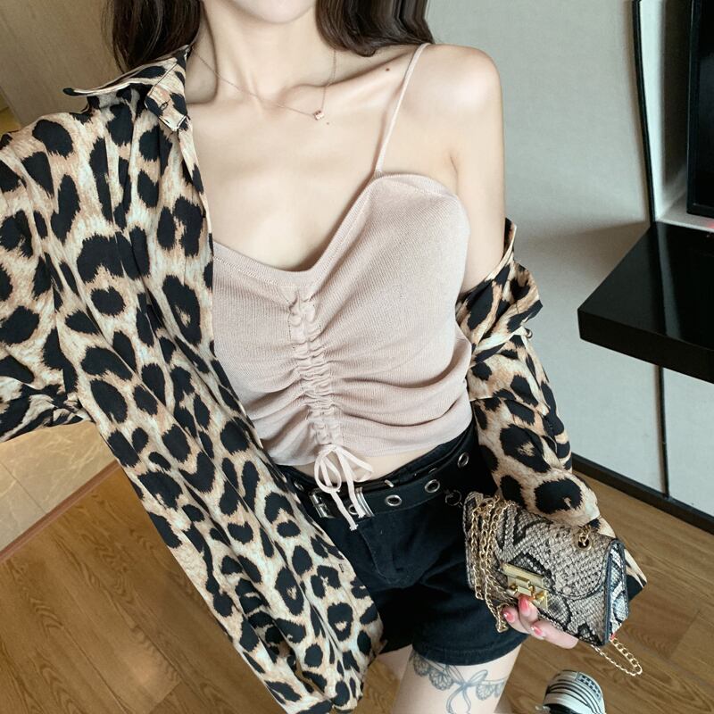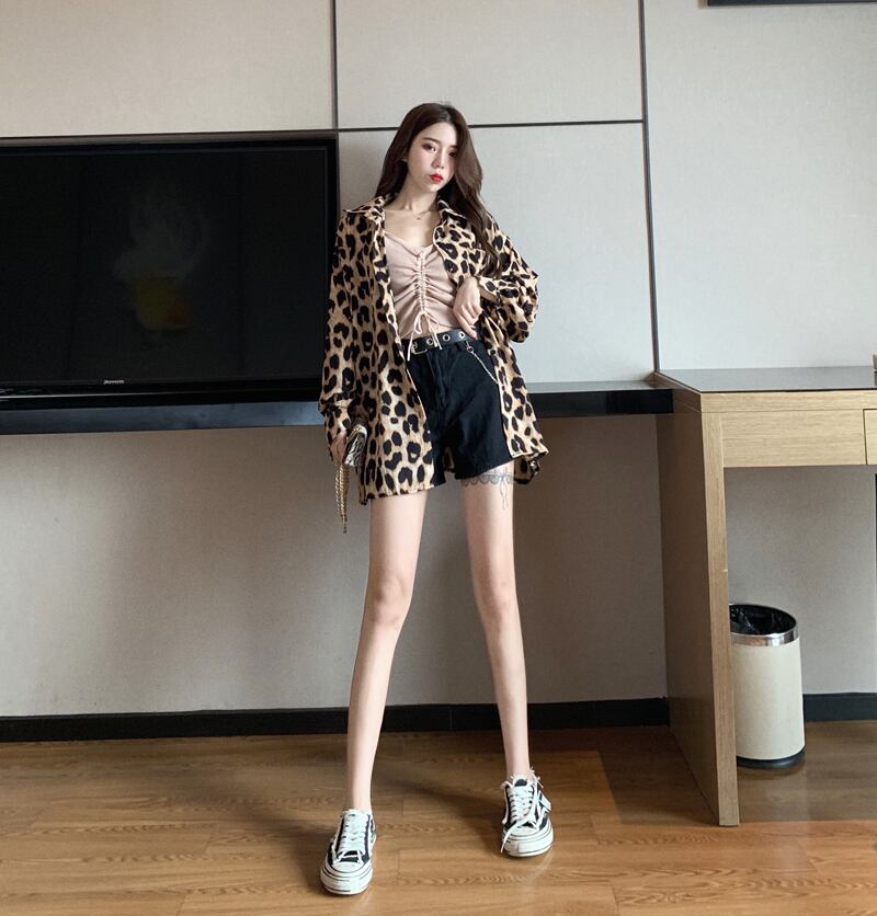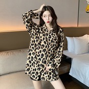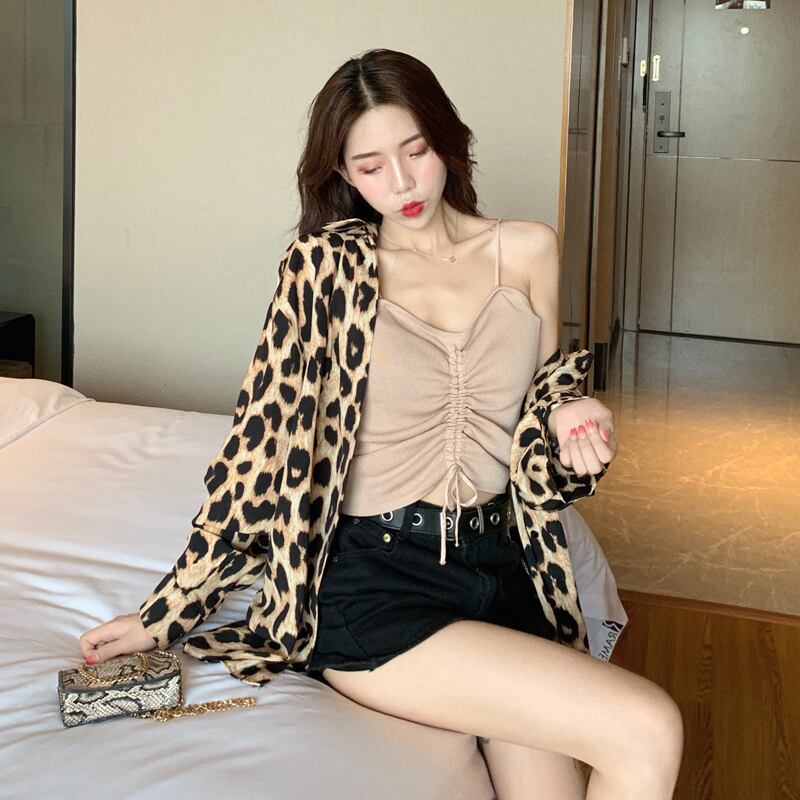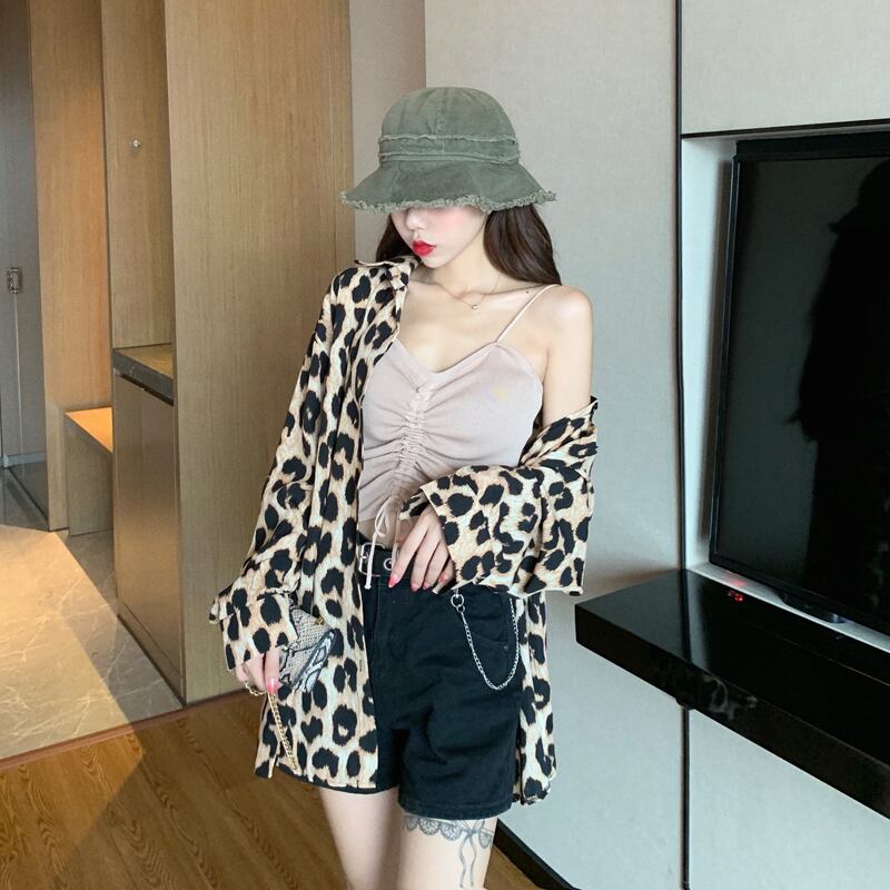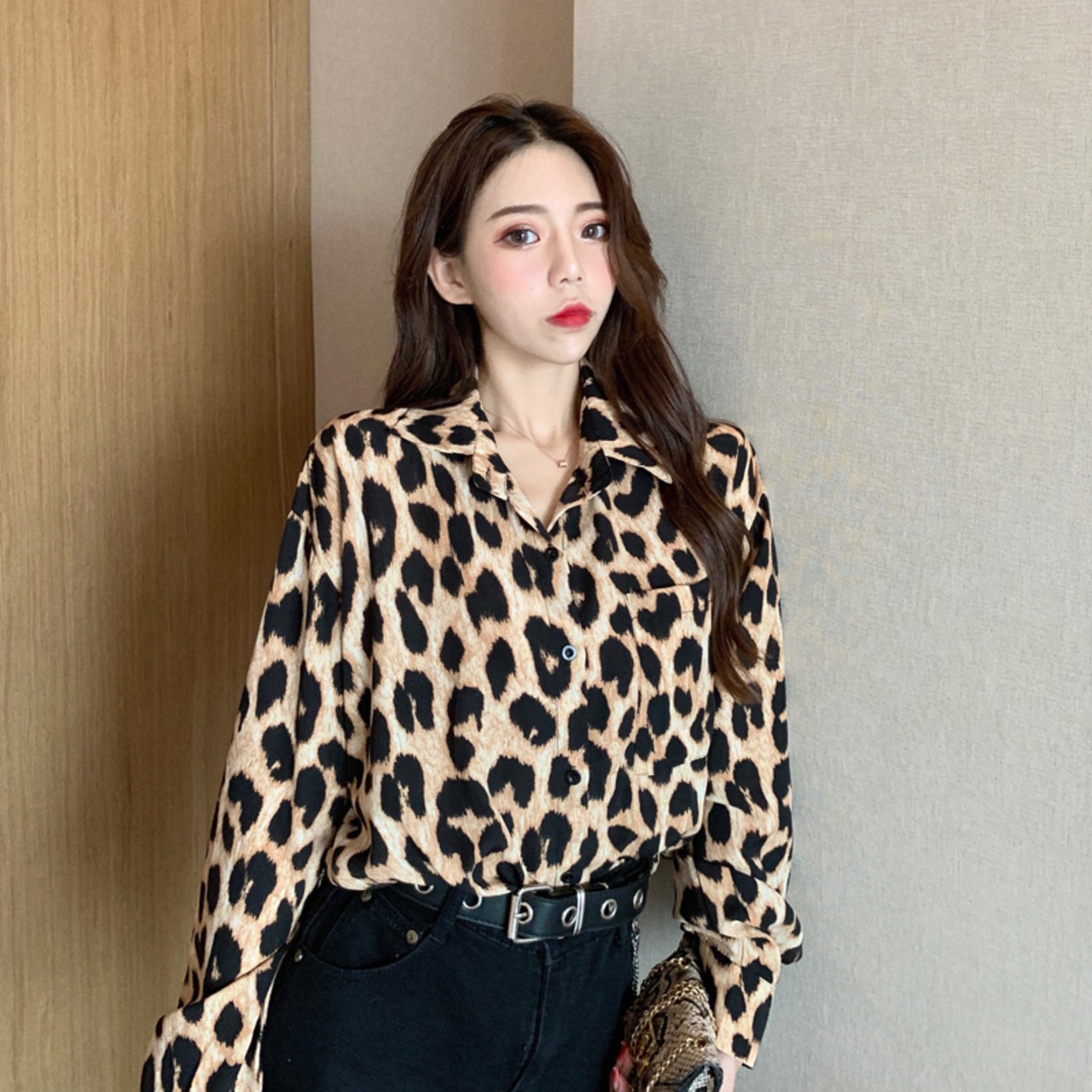 レオパード ブラウス シャツ 長袖 トップス ボタンシャツ ドロップショルダー アニマル柄 上品 カジュアル 韓国