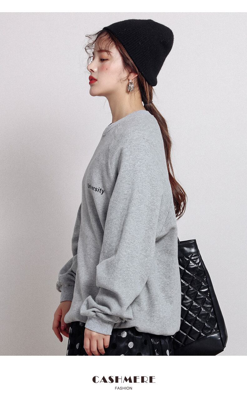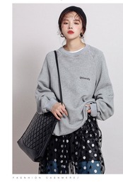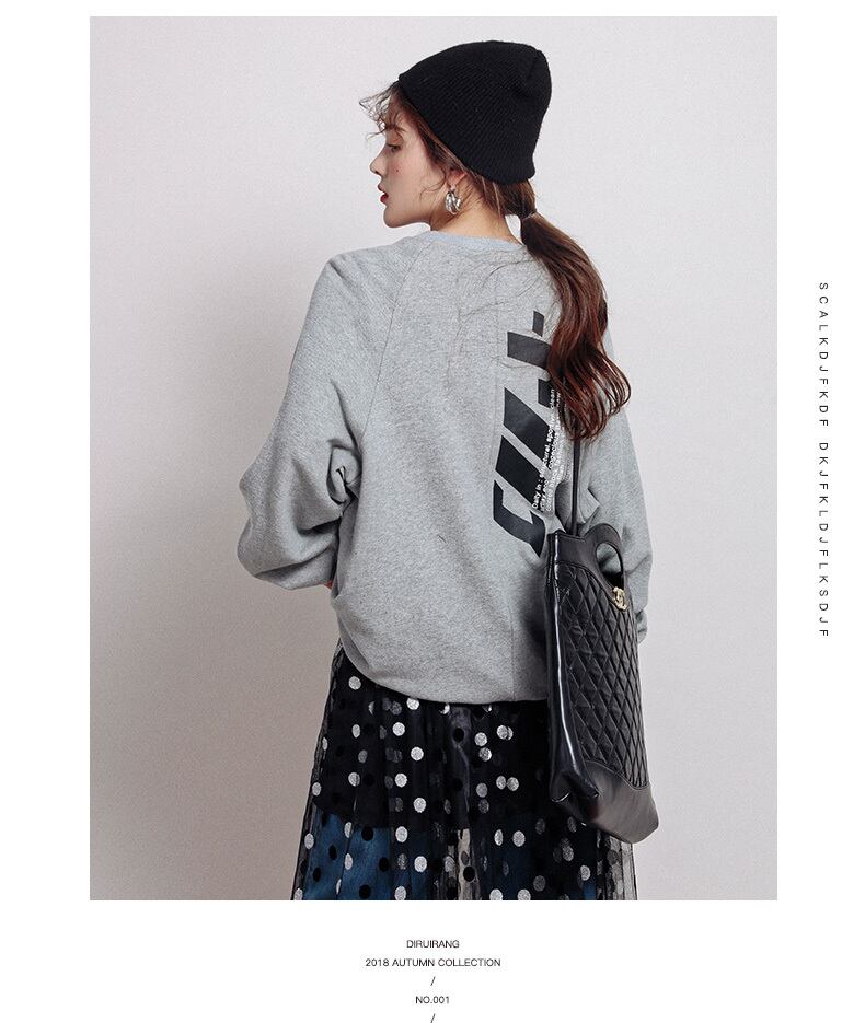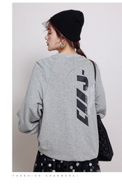 トレーナー ラウンドネック プリント スウェット グレー 大きめ ゆったり カジュアル こなれ感 レディース ラフ ストリート