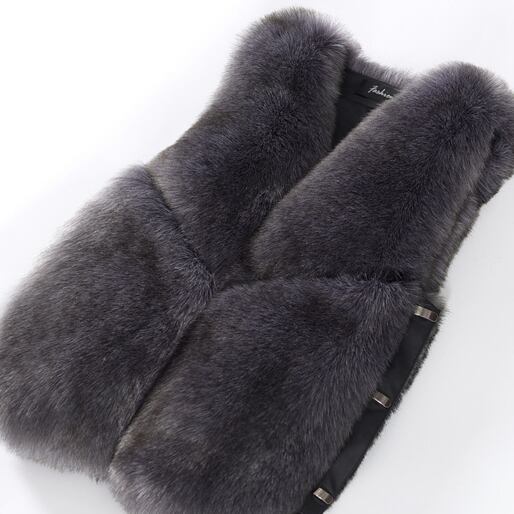 心華やぐファーベスト。存在感のあるベストは、着るだけで顔まわりも明るくなります。