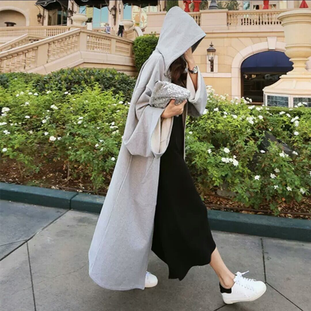 ロング ジップアップパーカー フードつき 長め グレー 無地 アウター トップス 羽織り お買い物 お出かけ デート 女子会 通学 学生 大人 カジュアル 秋冬 春