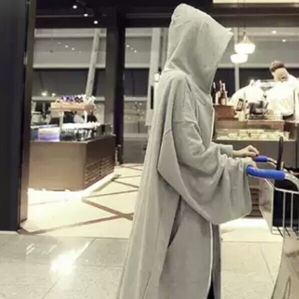 オーバーサイズのフード付きロングパーカー。