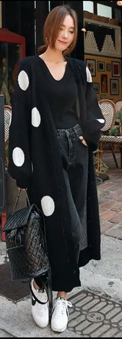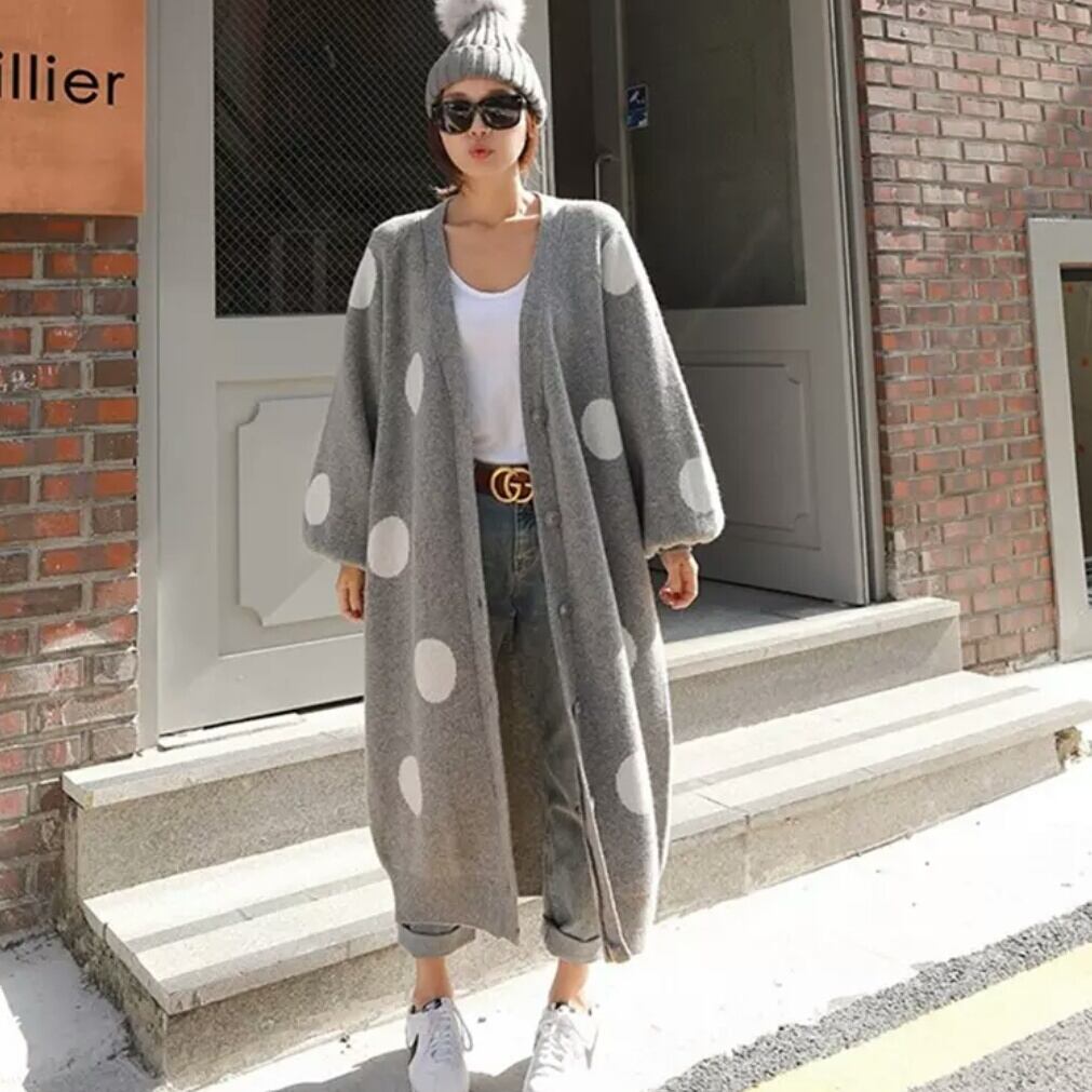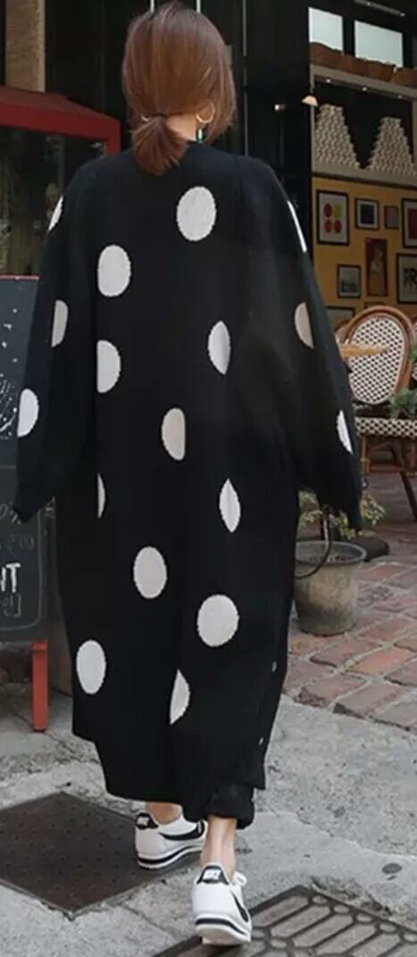 全2色 ドット柄 ロング カーディガン 長め トップス アウター 羽織り ニット 防寒 秋冬 春 デート 女子会 お買い物 通勤 通学 お出かけ 大人 カジュアル