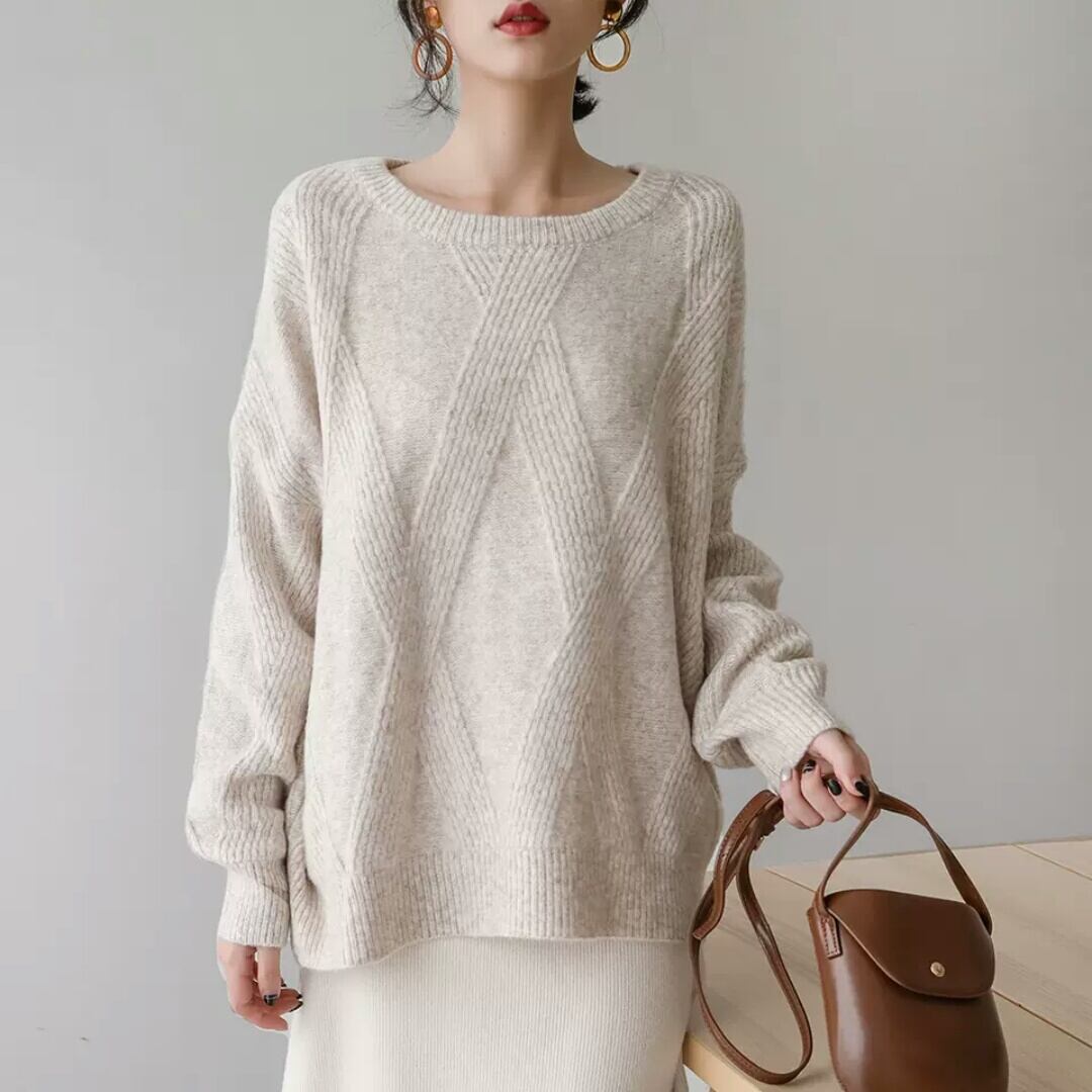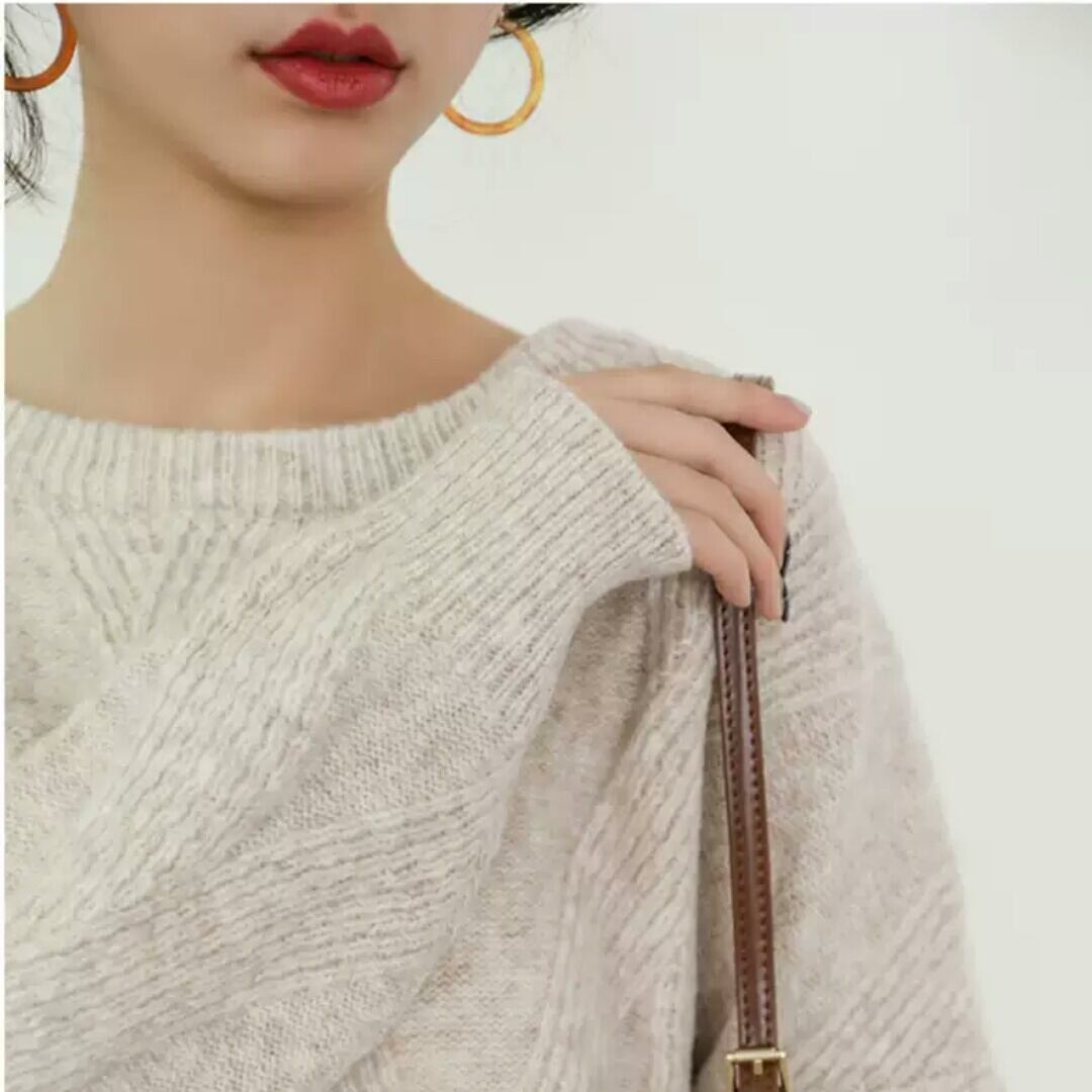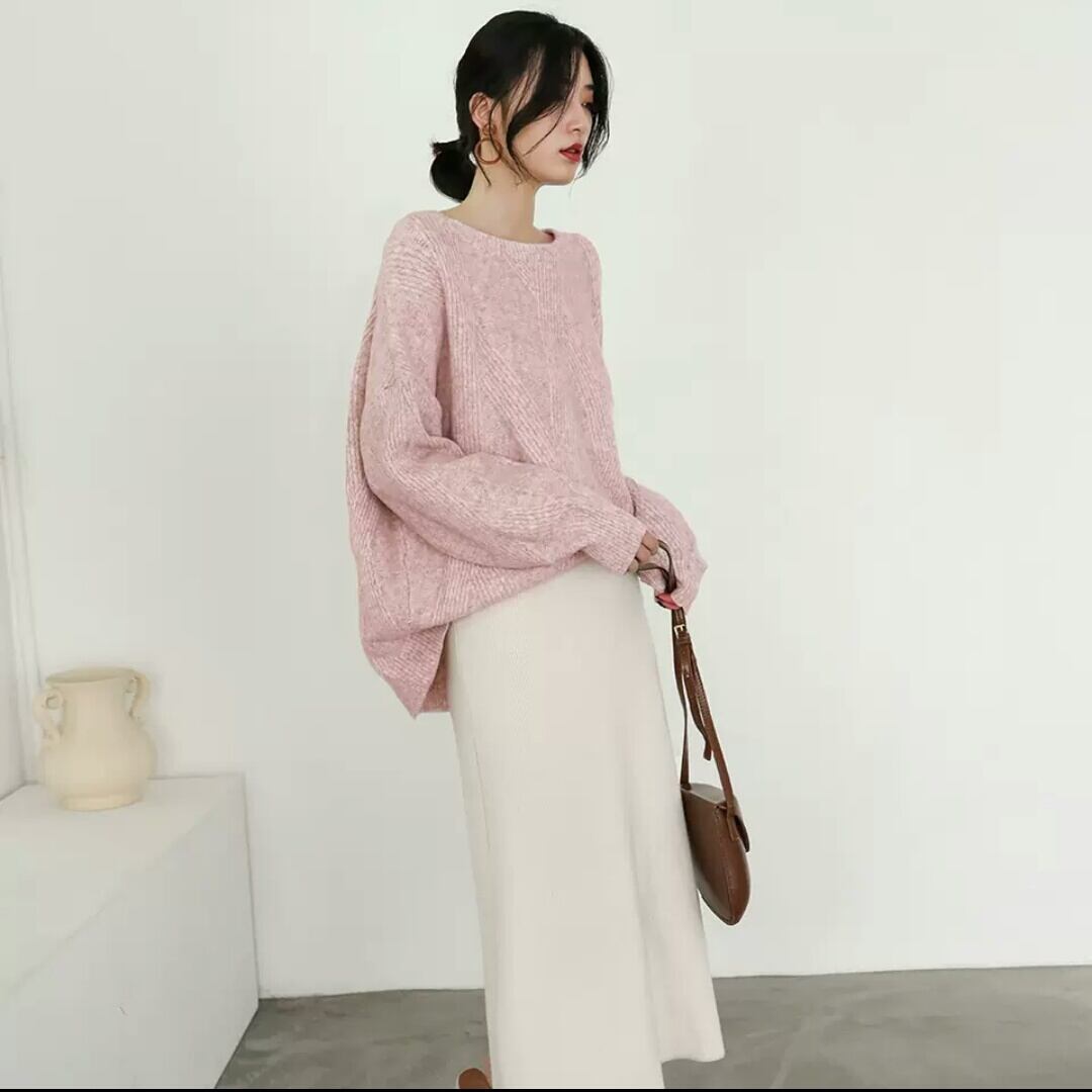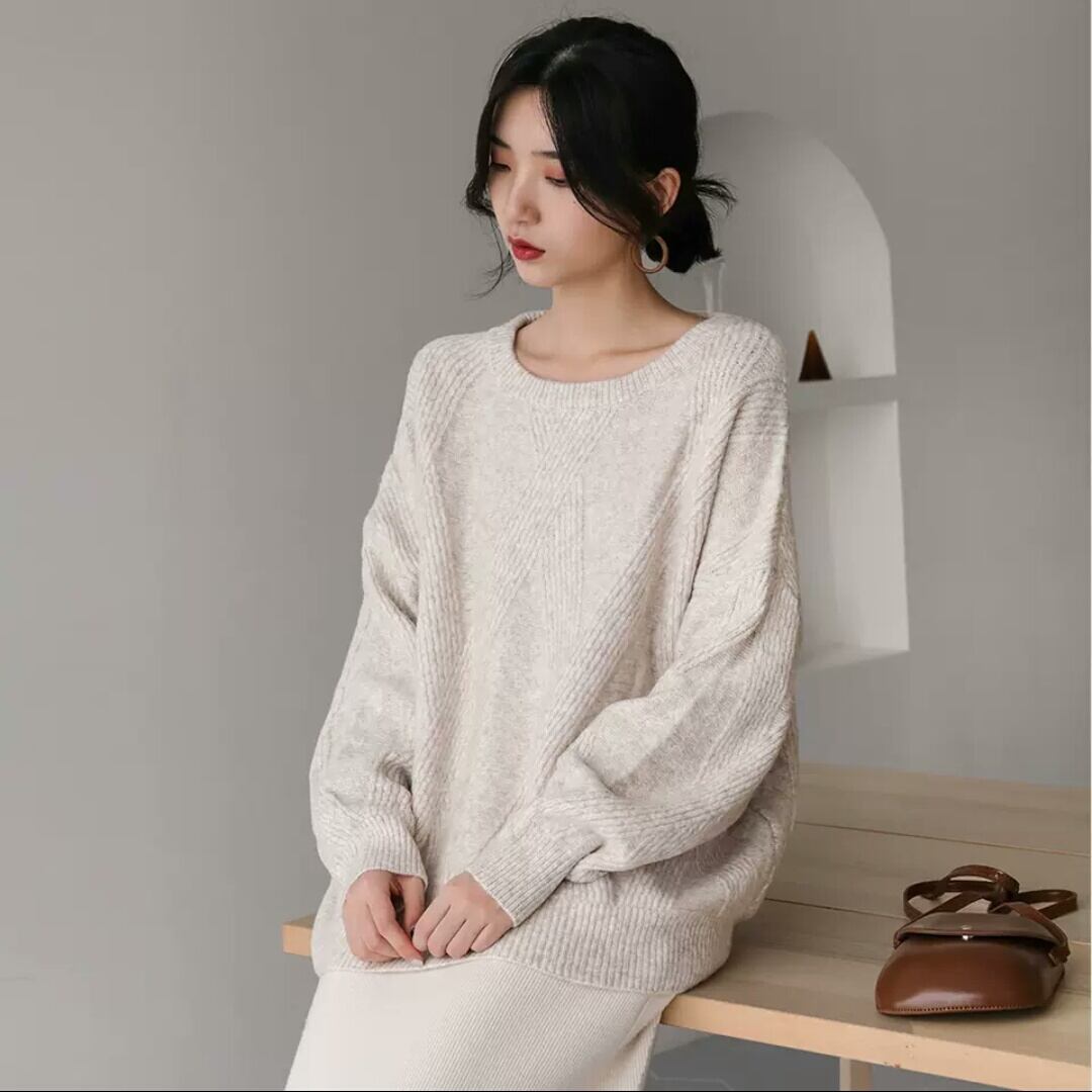 全2色 ラウンドネック ニット セーター トップス 防寒 無地 シンプル 大人 カジュアル キレイめ お出かけ お買い物 デート 女子会 通学 通勤 可愛い 秋冬 春