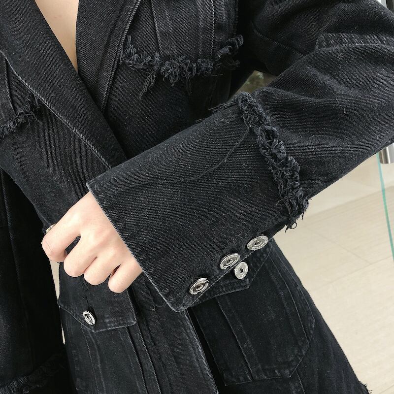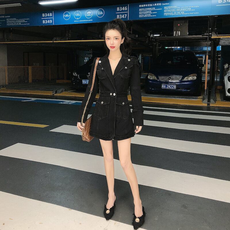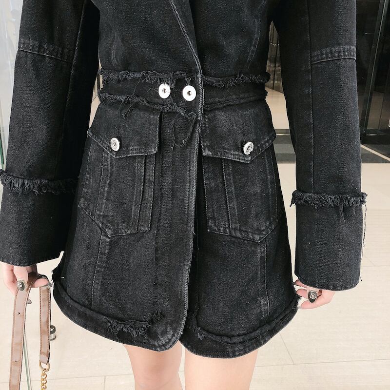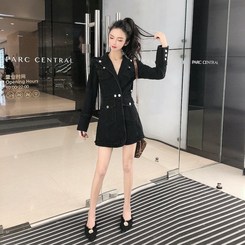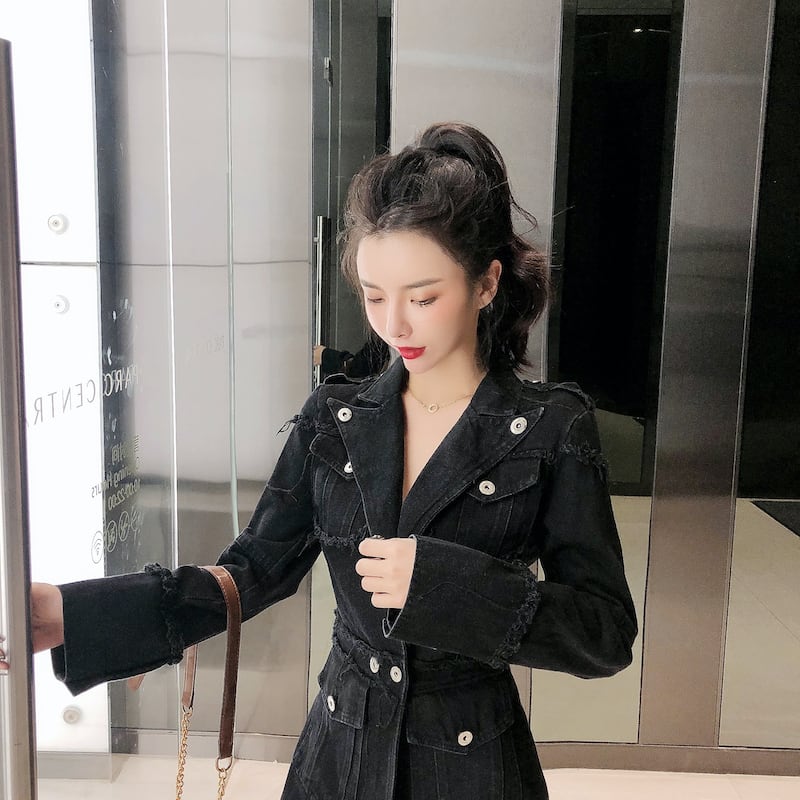 ジャケット デニムジャケット ミニワンピース デニム ショート丈 無地 タイト カジュアル ヴィンテージ 長袖 お出かけ デート 女子会 お買い物 ブラック 秋冬