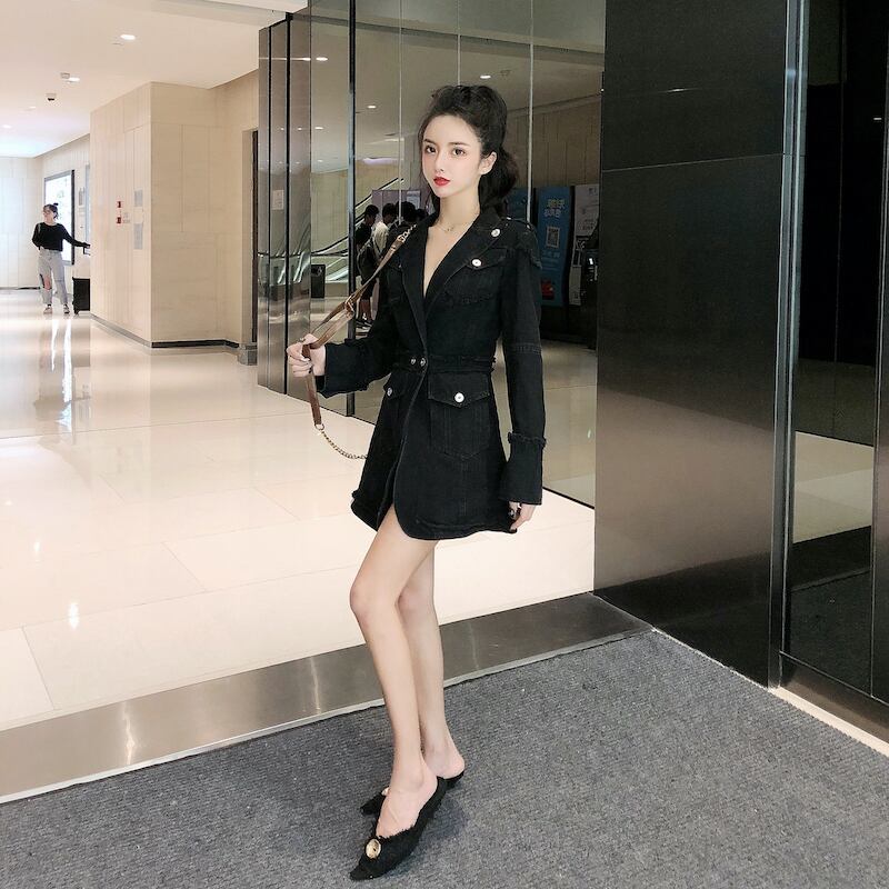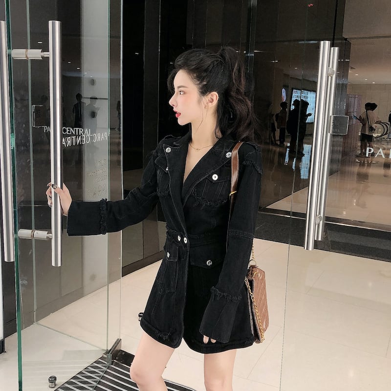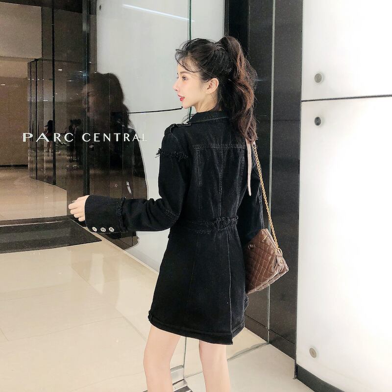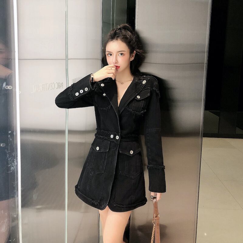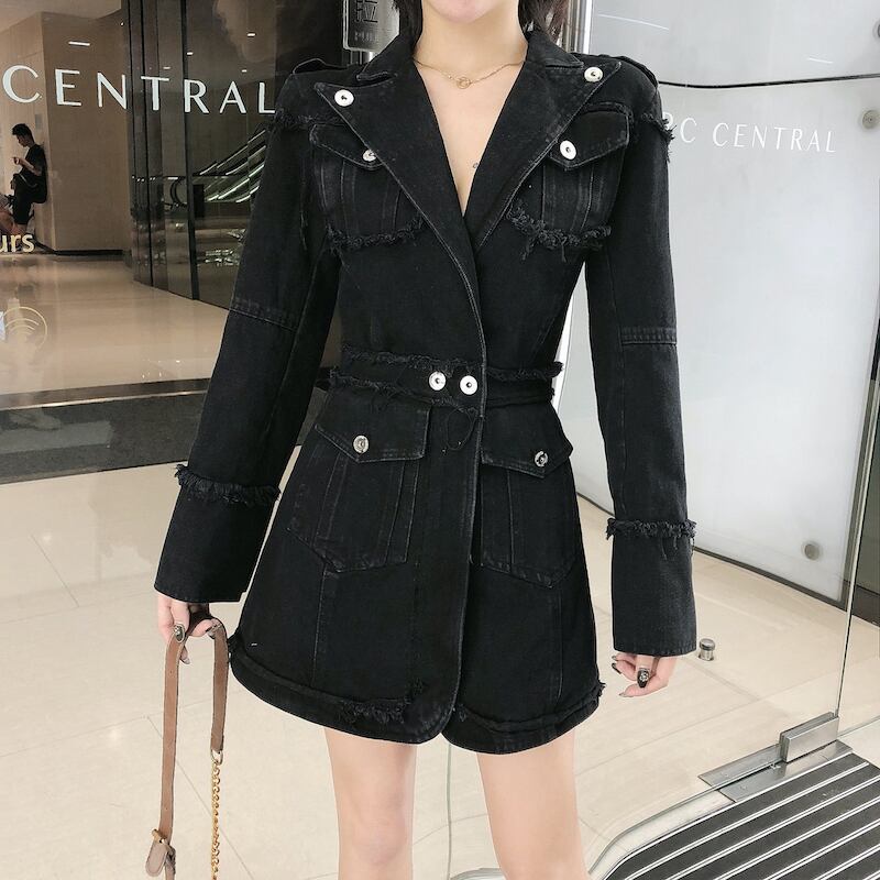 ジャケット デニムジャケット ミニワンピース デニム ショート丈 無地 タイト カジュアル ヴィンテージ 長袖 お出かけ デート 女子会 お買い物 ブラック 秋冬