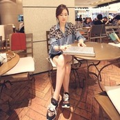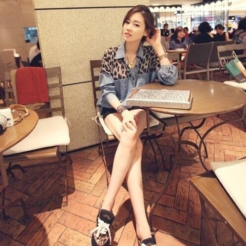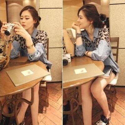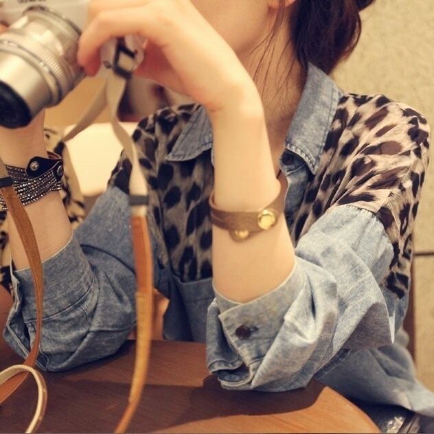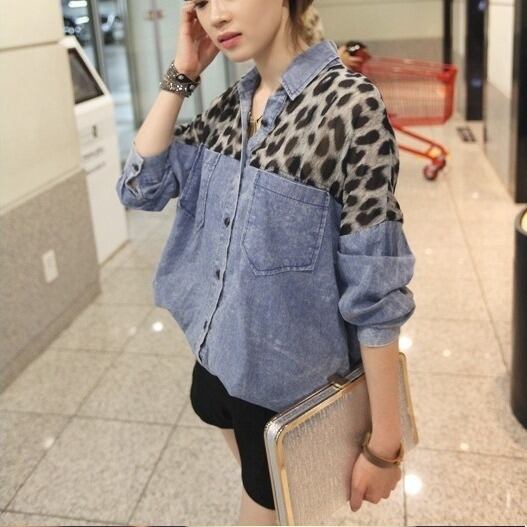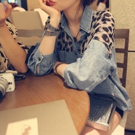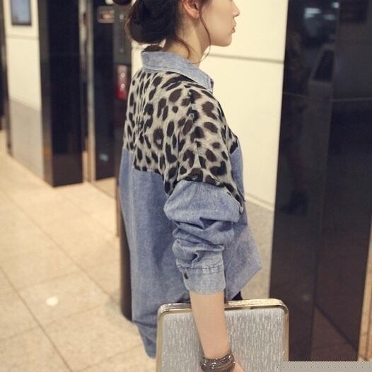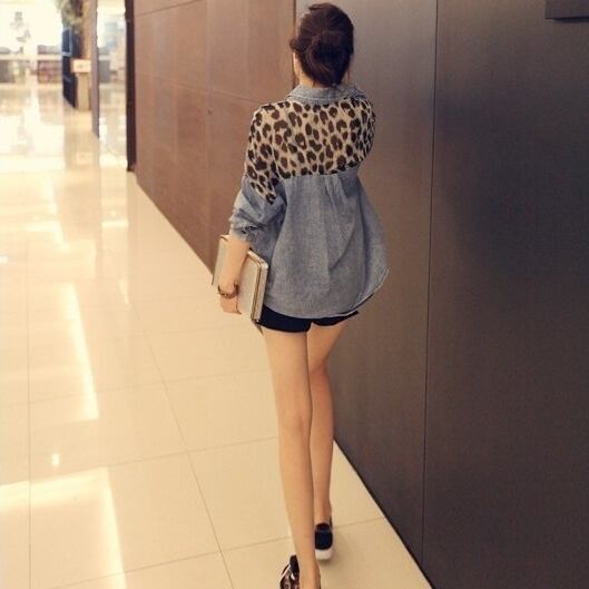 レオバード柄配色デニムシャツ。