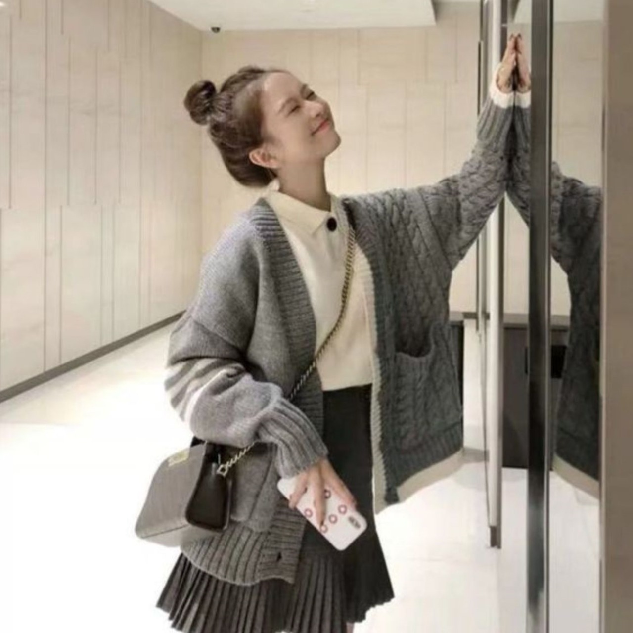 カーディガン 長袖 オーバーサイズ カジュアル 上品 ショート丈 デイリー 女子会 デート