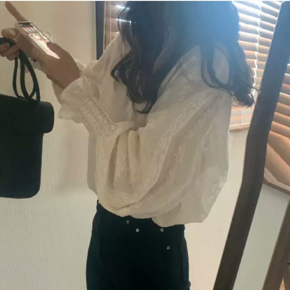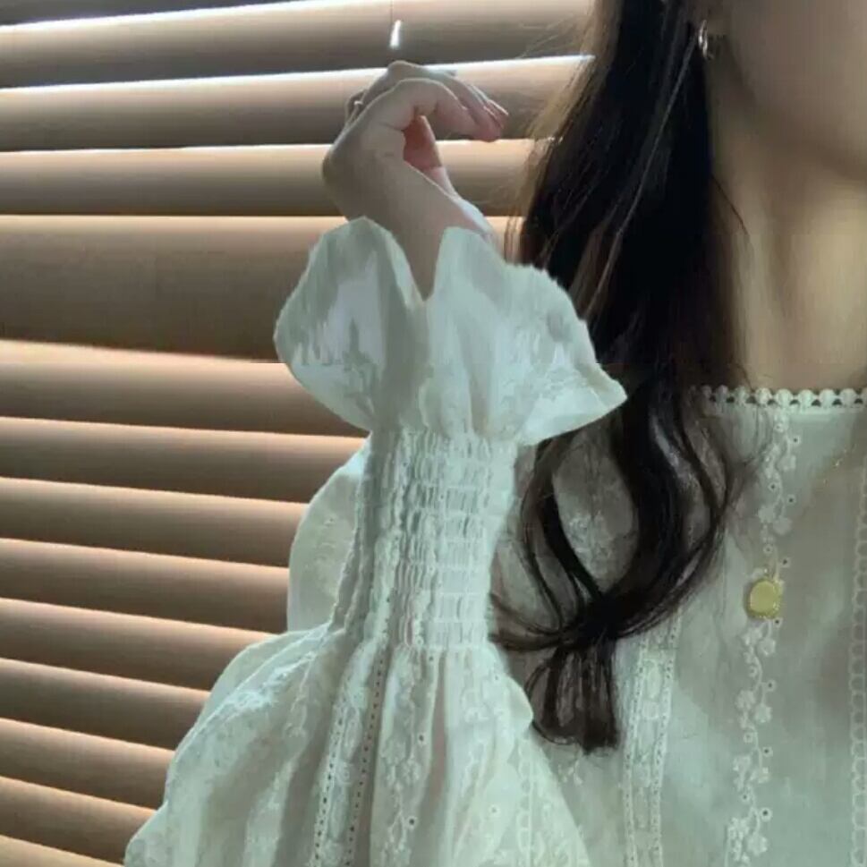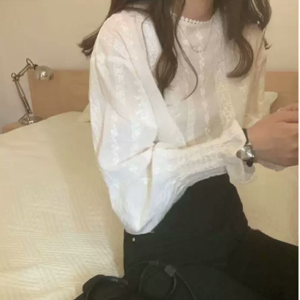 袖フリル ブラウス シャツ トップス フレア 袖コンシャス 無地 白 ホワイト 大人 エレガント キレイめ オフィス お出かけ お買い物 デート 女子会 通学 通勤 秋冬 春