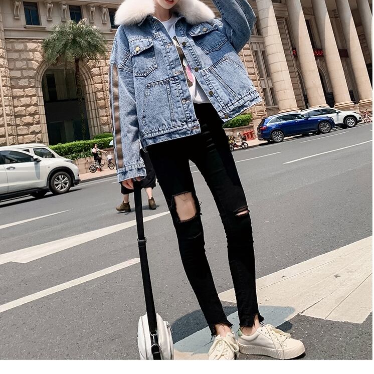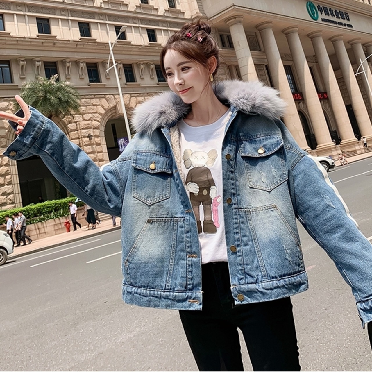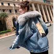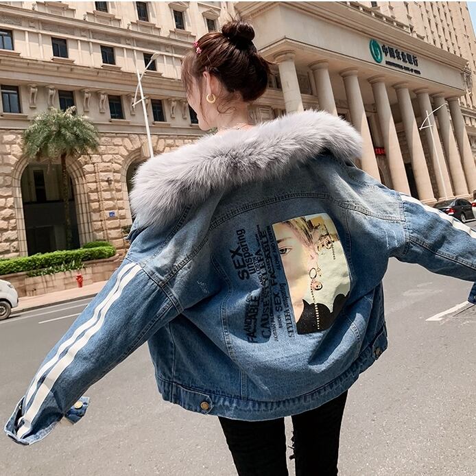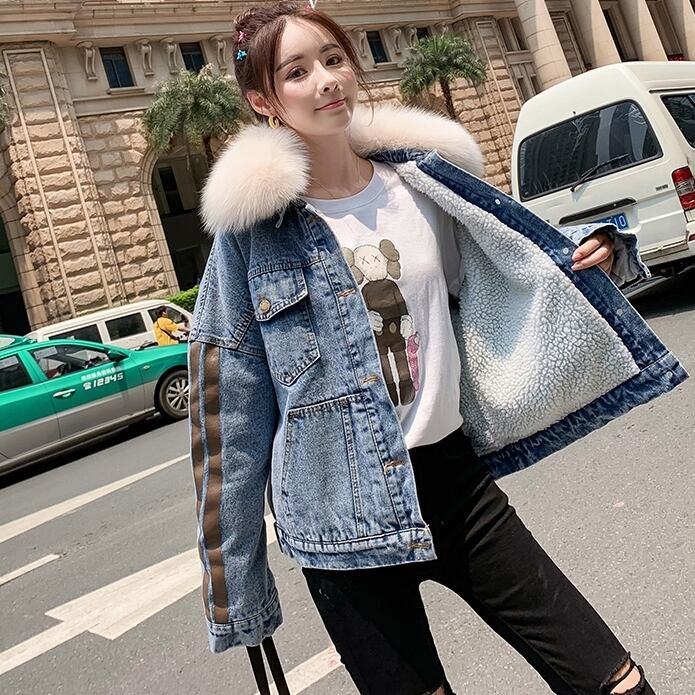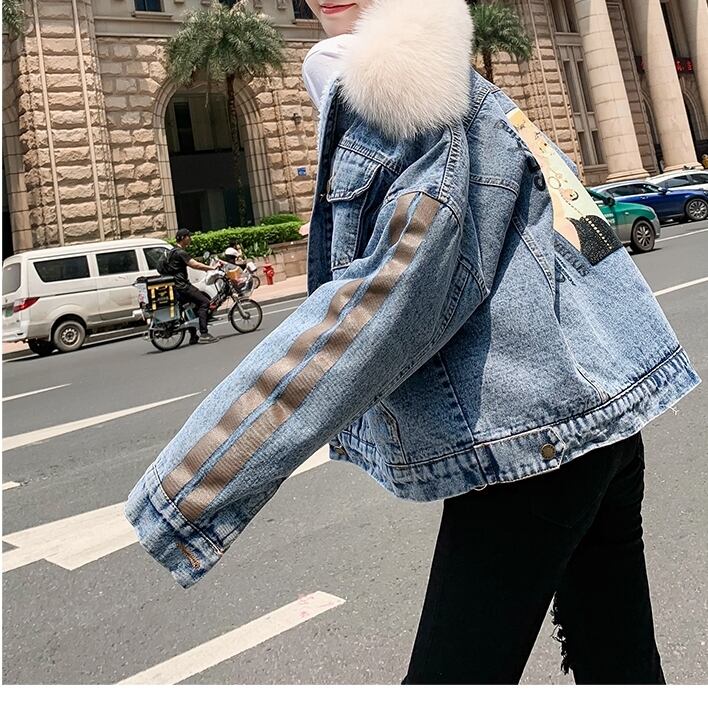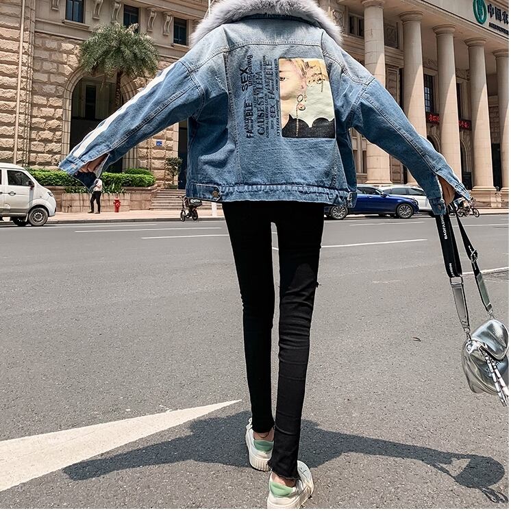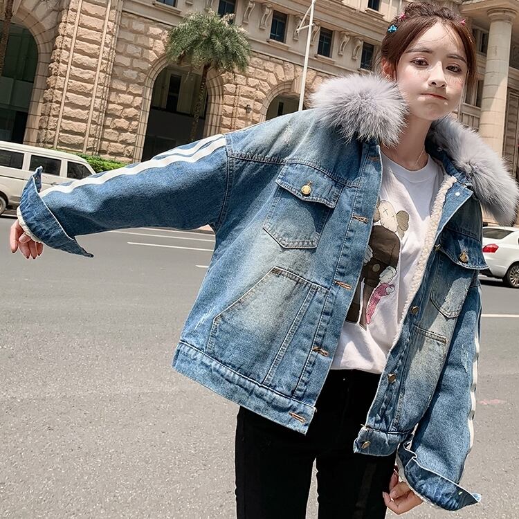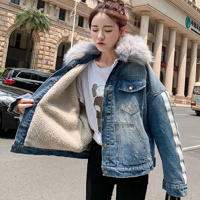 全2種 オーバーシルエット ボリューム襟 デニム ジャケット 秋冬 防寒 あったか カジュアル デート ショッピング レジャー 学生