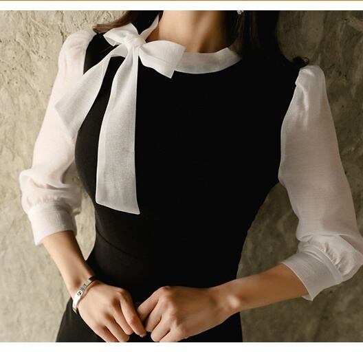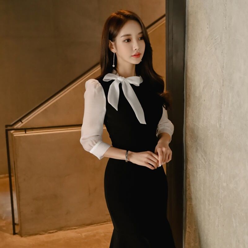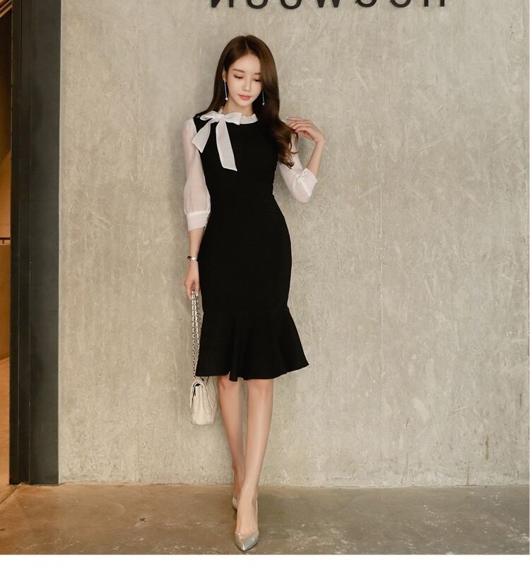 胸元リボンとマーメイド風スカートが女性らしいデザインです!