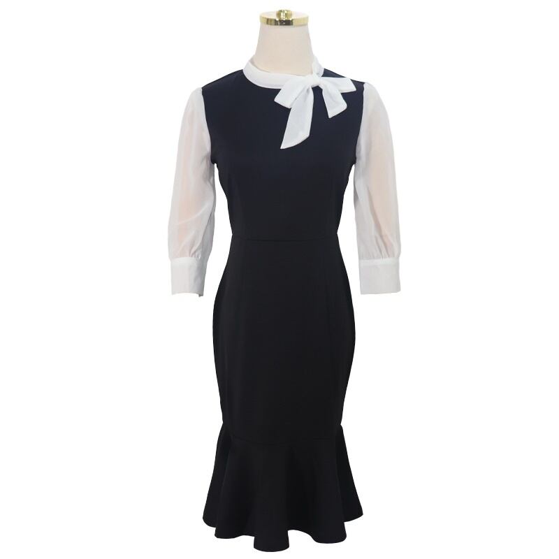 ワンピース OL風 ひざ丈 マーメイド 七分袖 ラウンドネック 通勤 秋冬 オフィス エレガント ハイウエスト