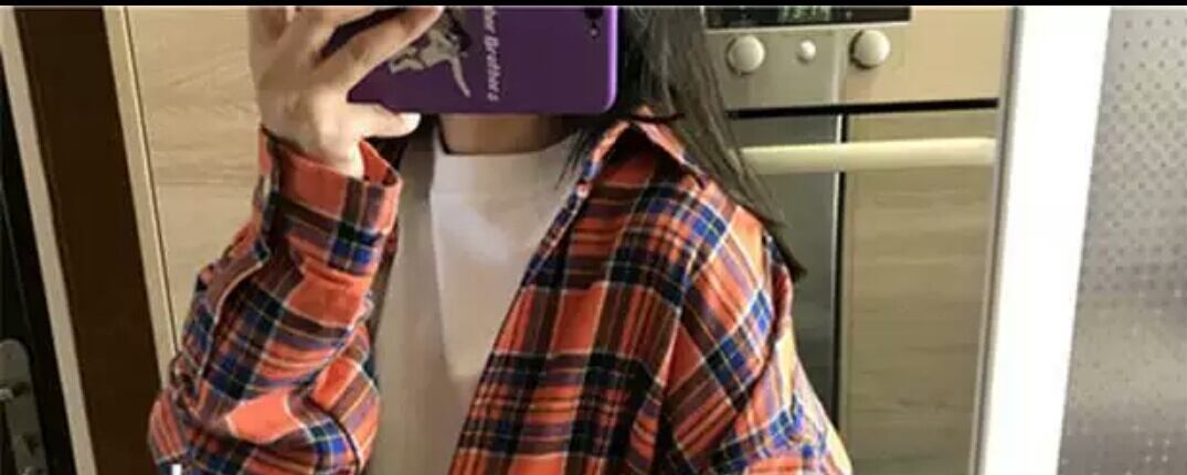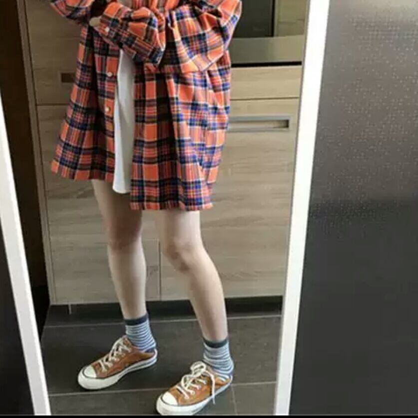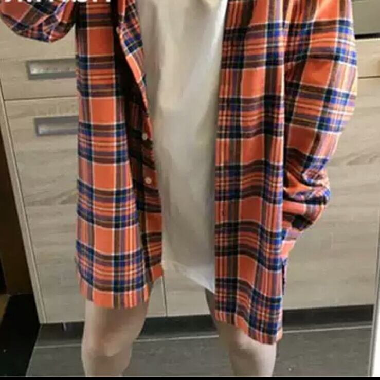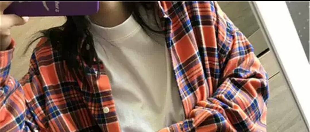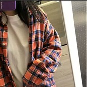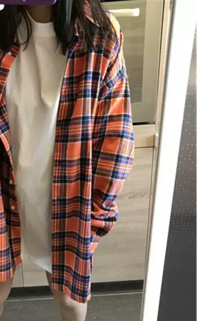 オレンジカラーが女性らしさを引き出すチェックシャツです。