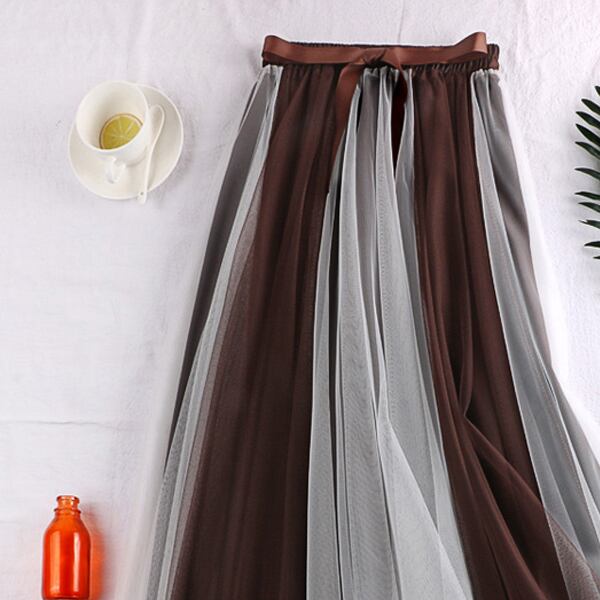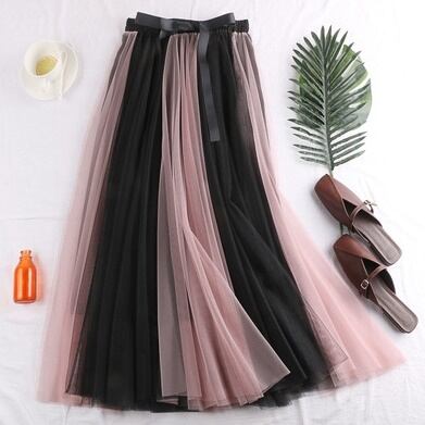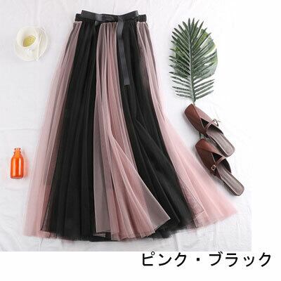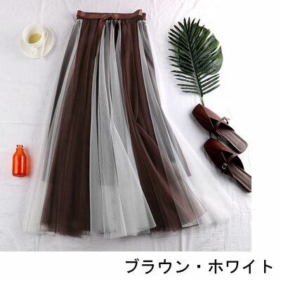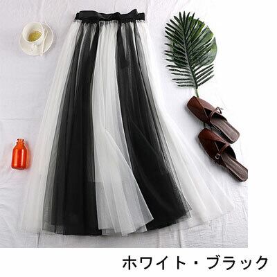 全6色 ハイウエストスカート ボトムス ミモレ丈 ひざ下丈 バイカラー シースルー ストライプ 秋冬 レトロ 大人可愛い デート お出かけ デイリー 20代