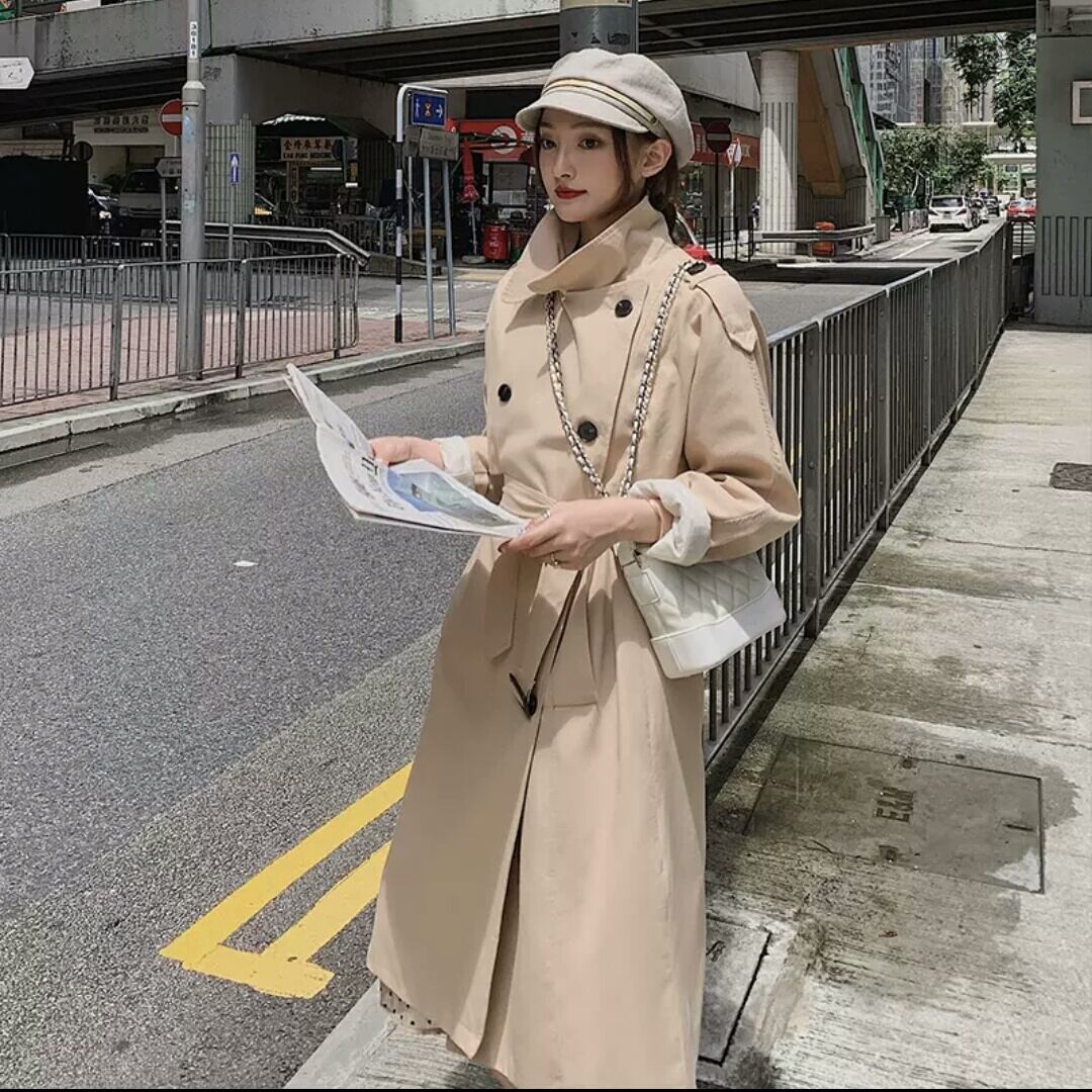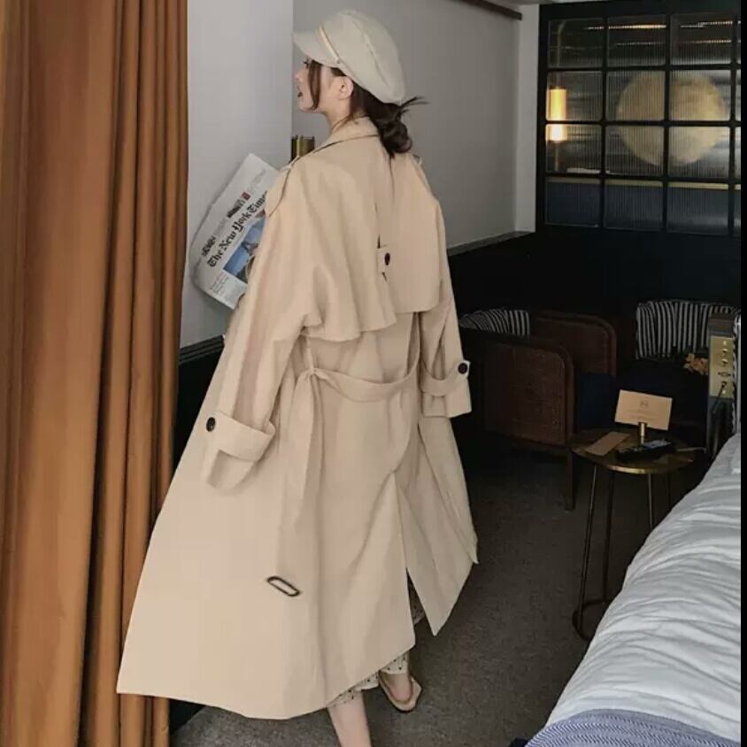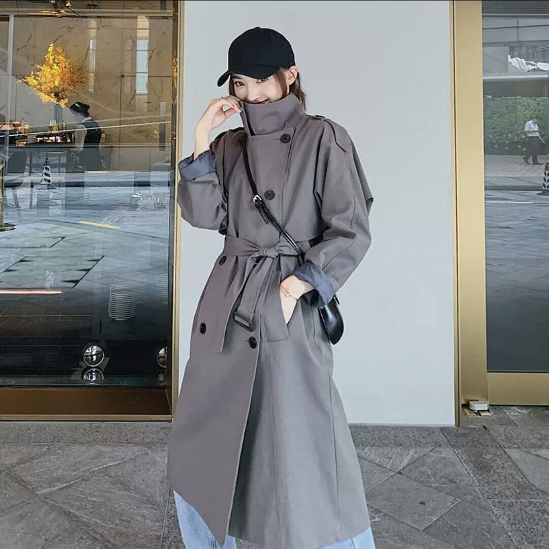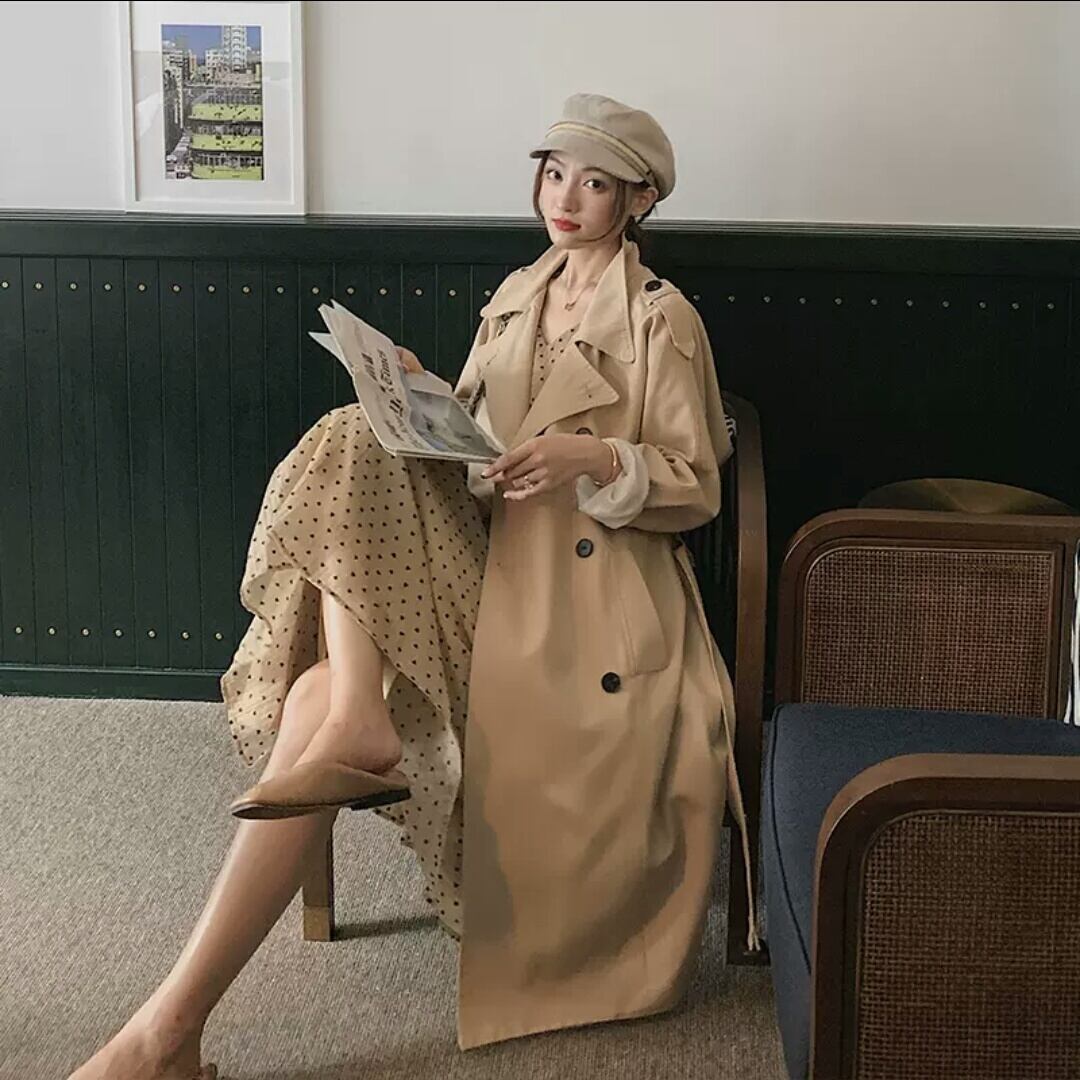 全2色 トレンチコート ウインドブレーカー アウター 羽織り コート ダブルボタン ロング 大人 カジュアル キレイめ シンプル 秋冬 無地 お出かけ お買い物 デート 女子会 通学 通勤 学生 春