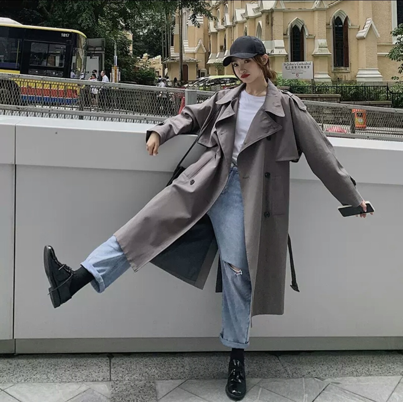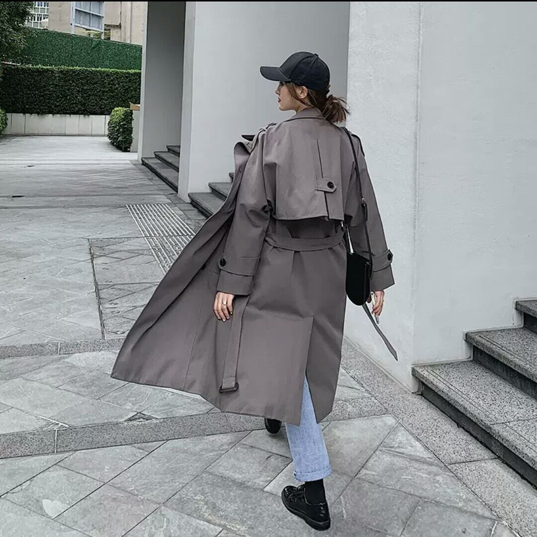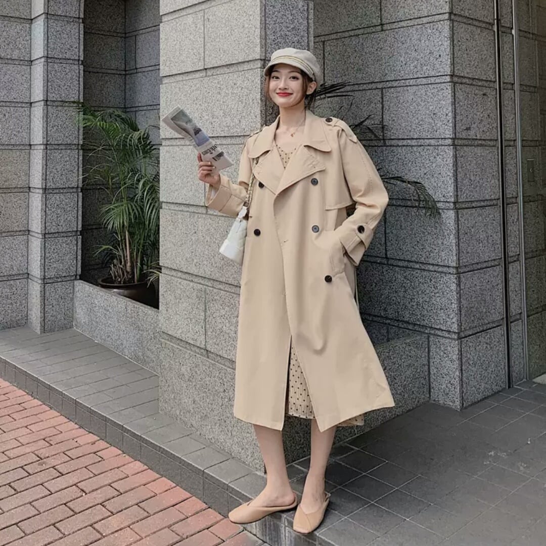 全2色 トレンチコート ウインドブレーカー アウター 羽織り コート ダブルボタン ロング 大人 カジュアル キレイめ シンプル 秋冬 無地 お出かけ お買い物 デート 女子会 通学 通勤 学生 春