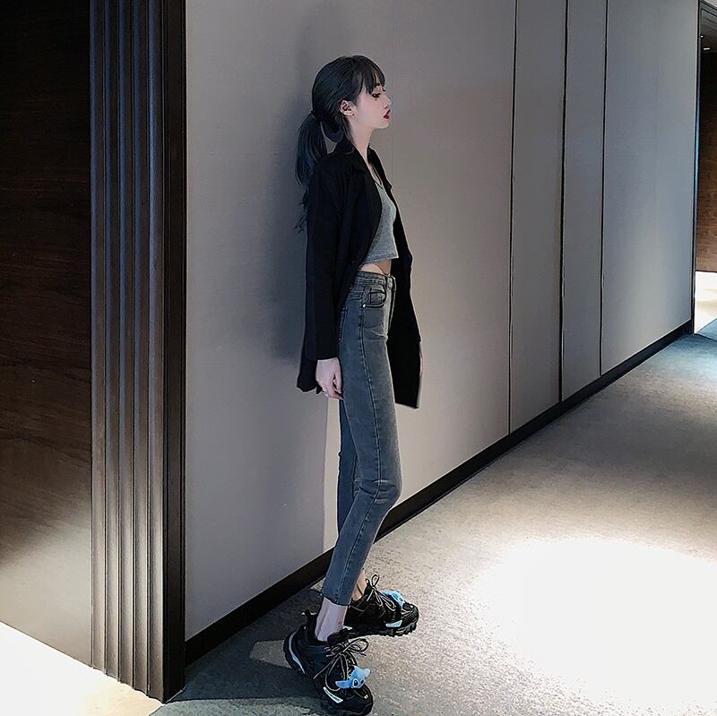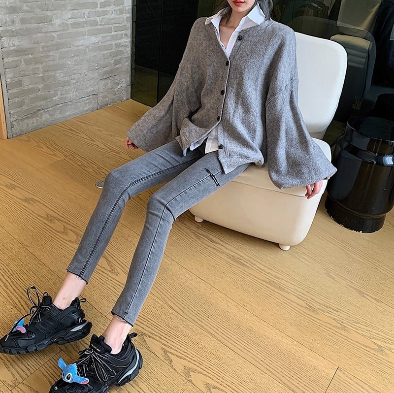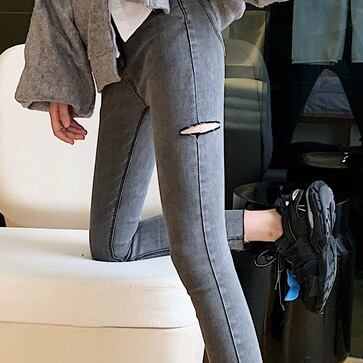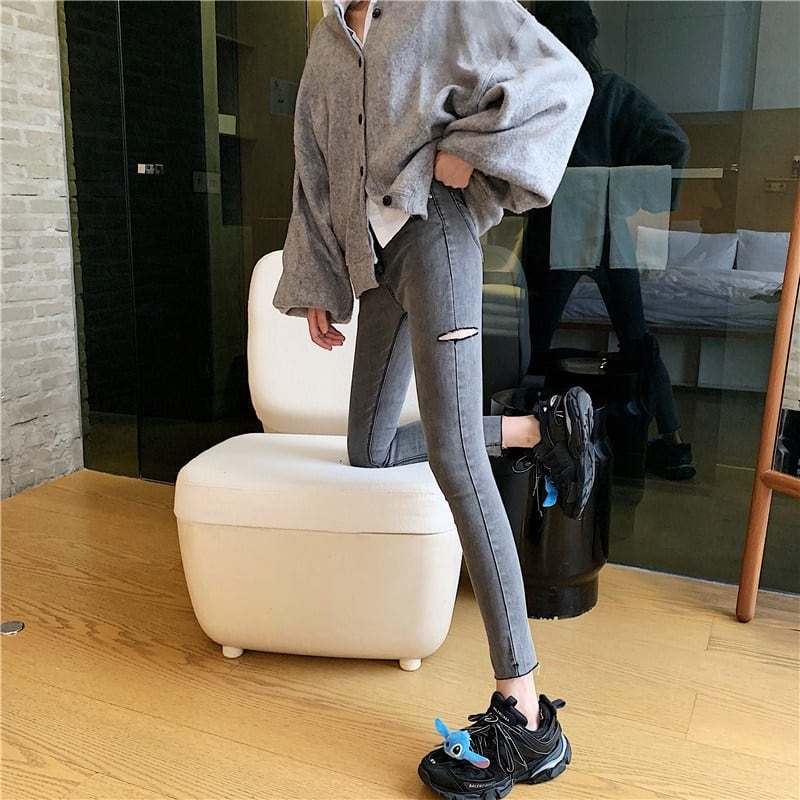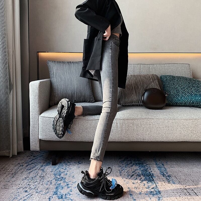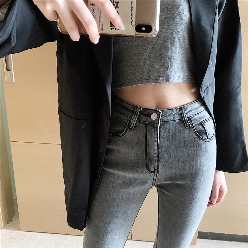 スキニーパンツ デニム グレー カジュアル 無地 こなれ感 タイト ベーシック 秋冬 お出かけ ハイウエスト